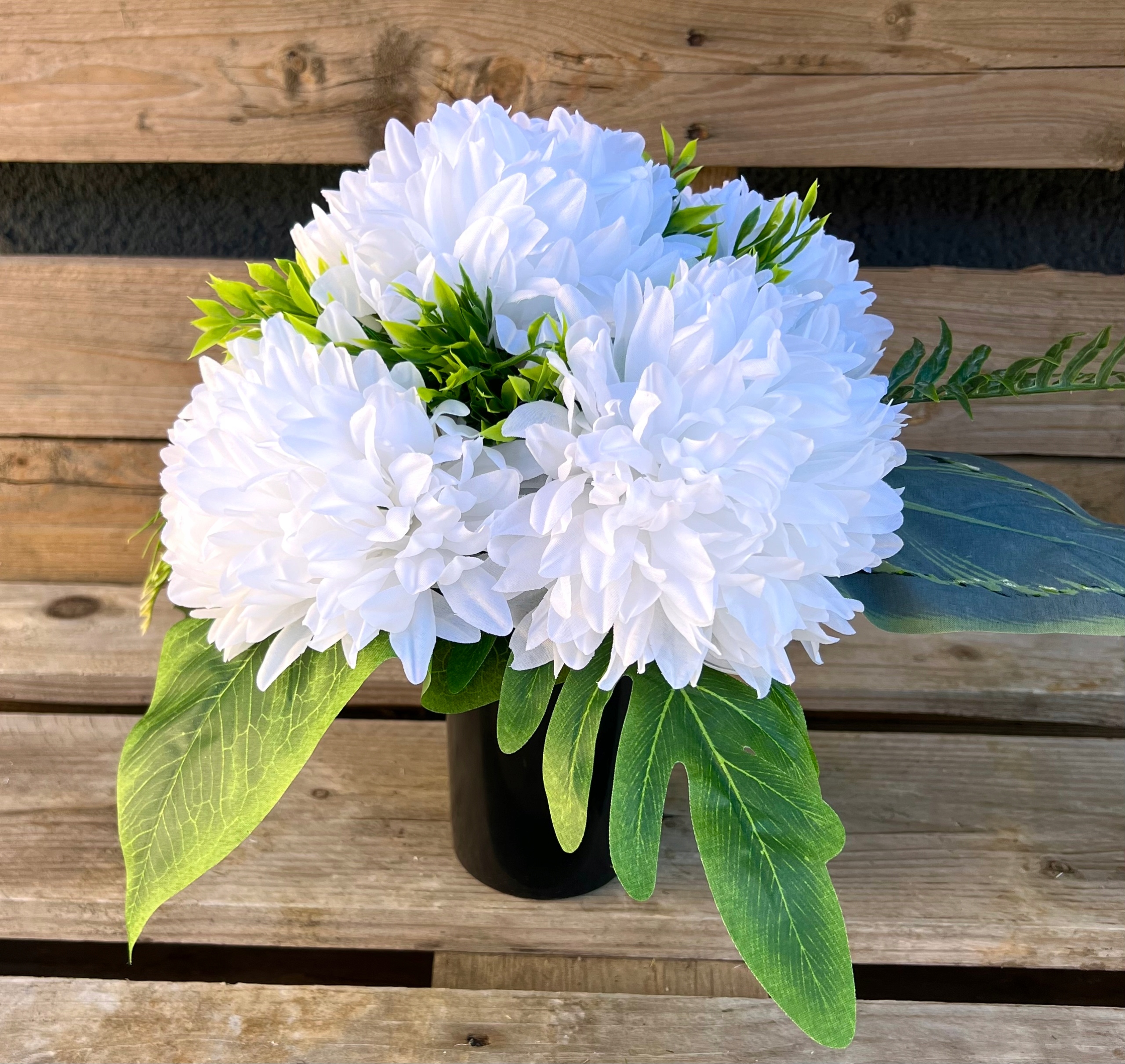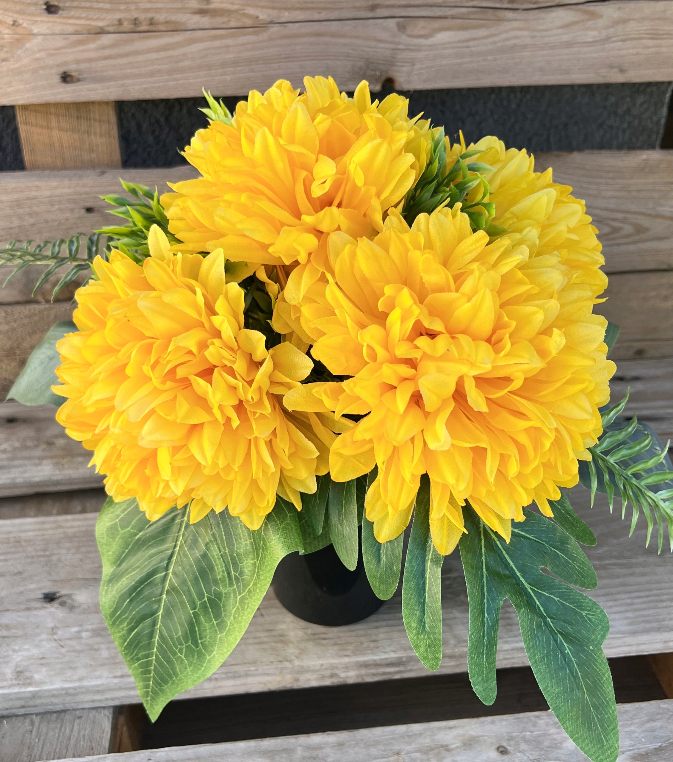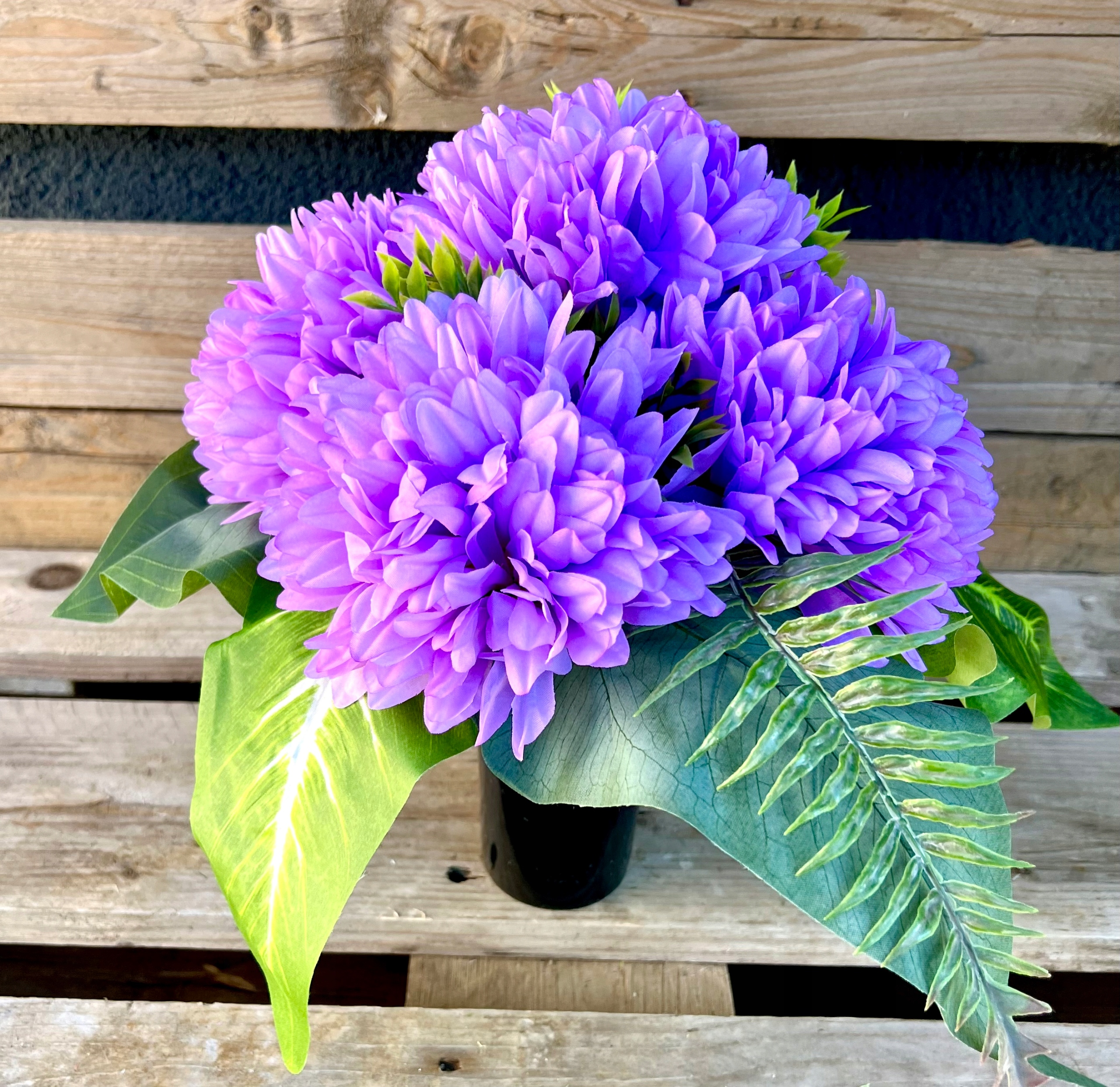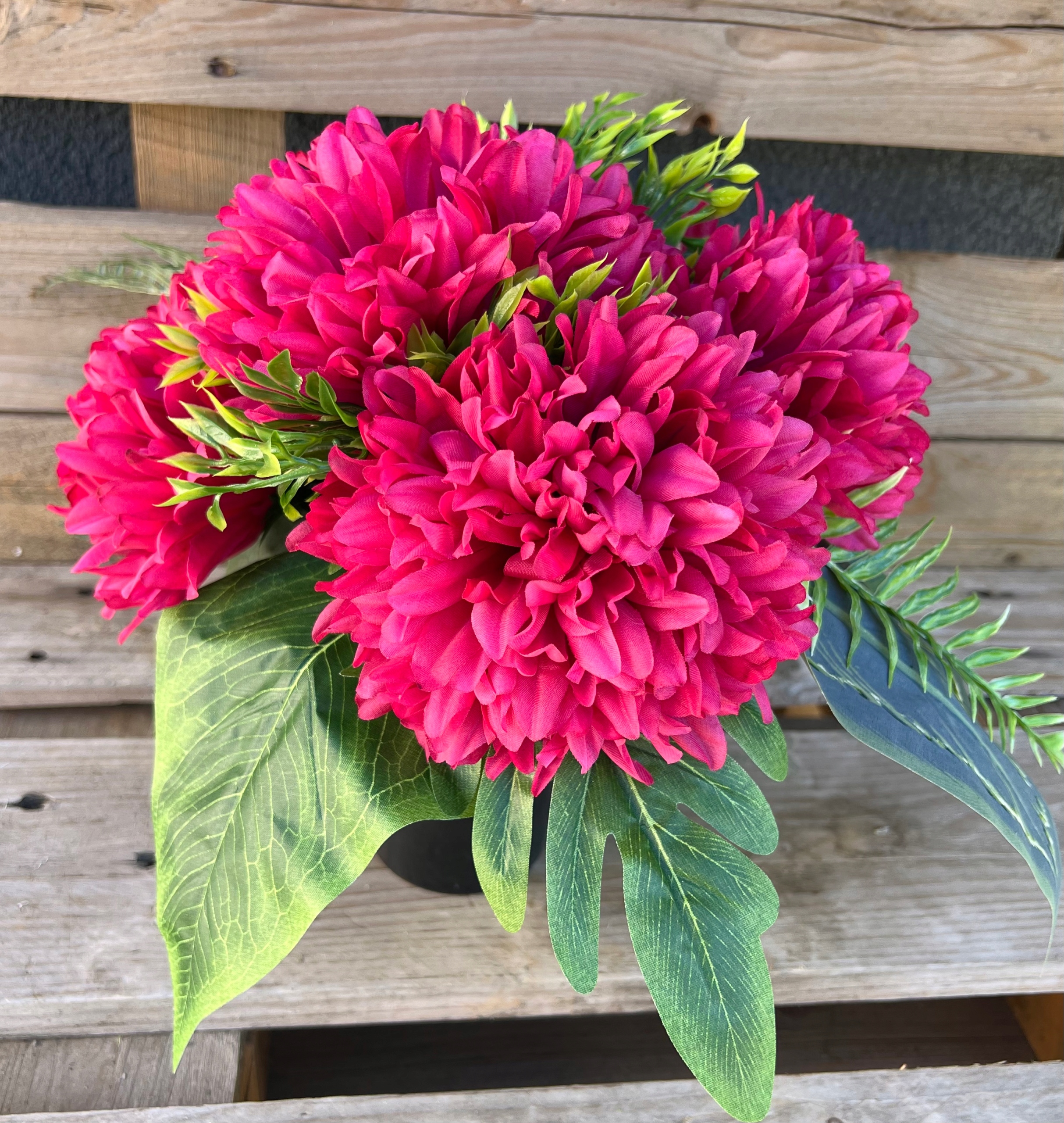 В состав букета и букета входит набор искусственных хризантем нескольких цветов.