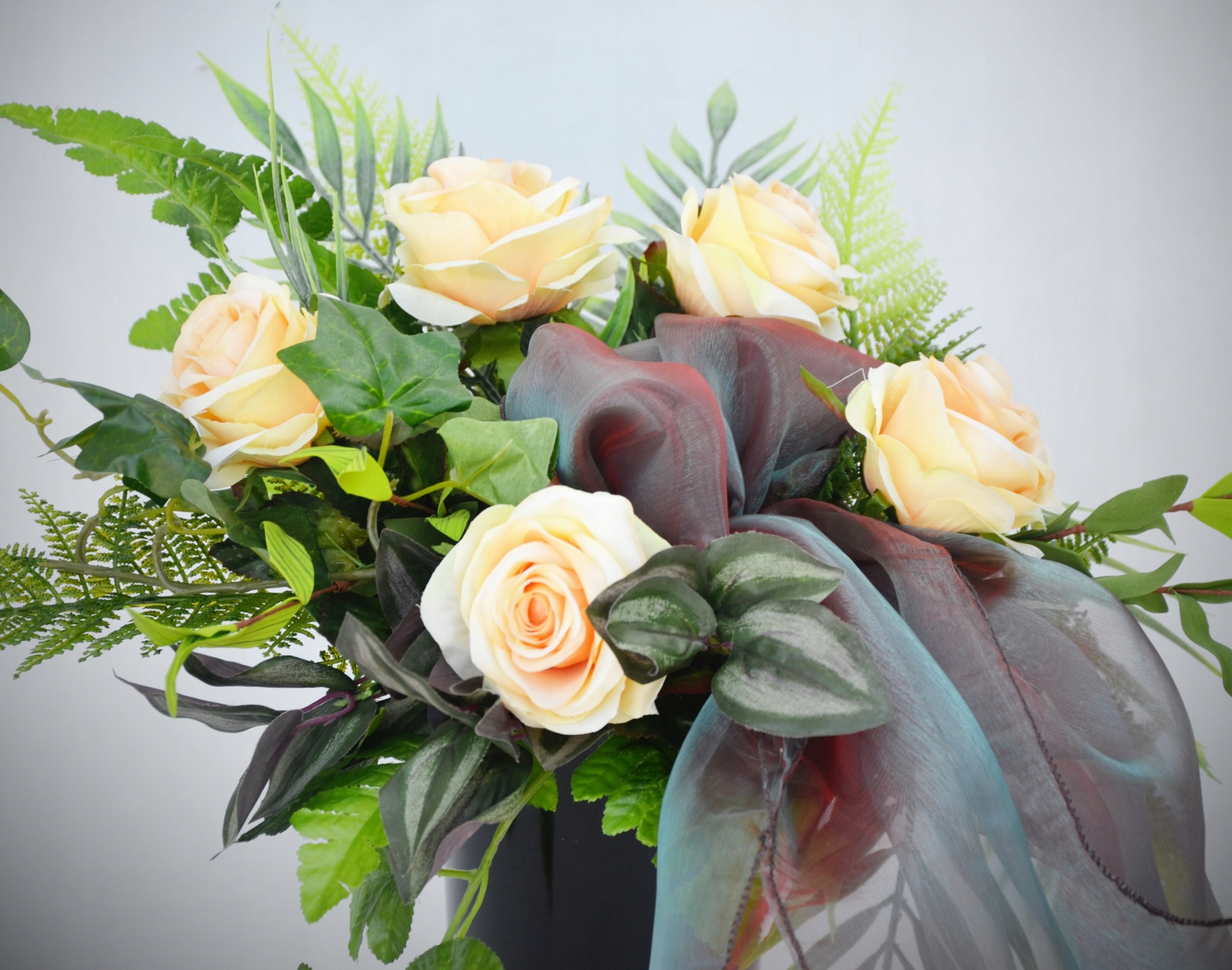 Букет прекрасен, как живой, но на могиле останется гораздо дольше.