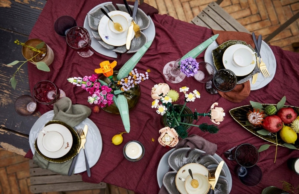 Все детали букета выполнены из элементов LEGO и могут видоизменяться. сделать модель уникальной. Большинство цветов имеют подвижные лепестки, что позволяет менять расположение букета. Стебли можно разбирать и собирать другими способами, меняя длину и форму цветков. Этот набор входит в ботаническую коллекцию LEGO для взрослых и содержит элементы, изготовленные из пластика растительного происхождения, полученного из экологически чистого сахарного тростника.