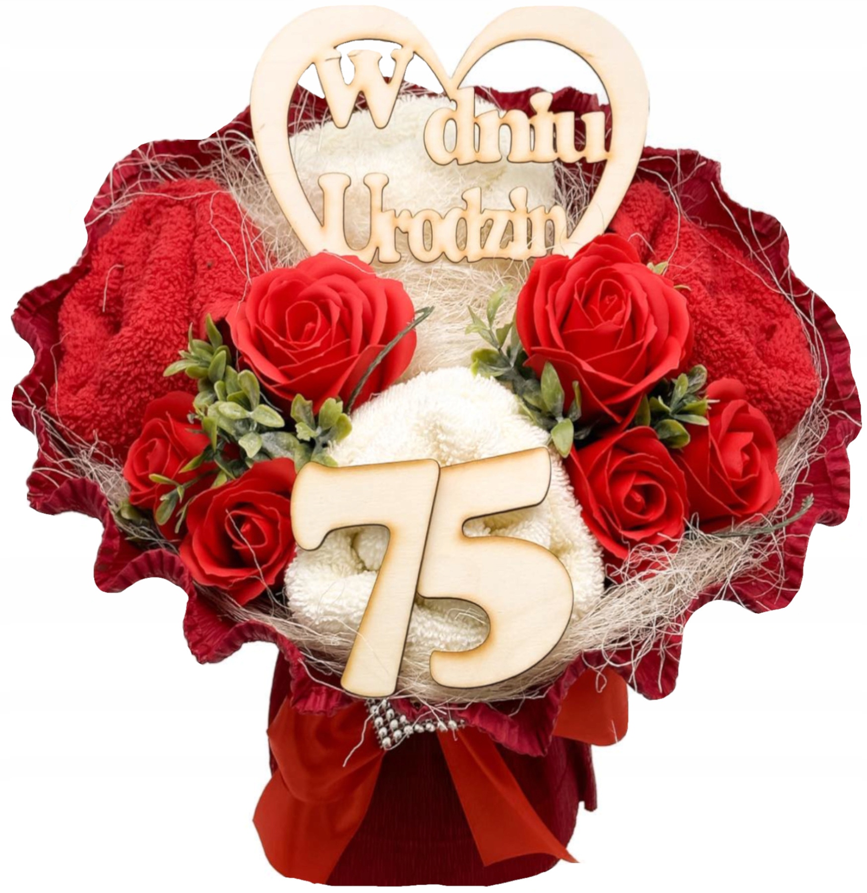 Не ищите дальше! Наш букет из полотенец представляет собой идеальное сочетание элегантности и функциональности. Вместо цветов, которые завянут, подарите букет из двух качественных полотенец, красиво украшенных мыльными цветами и деревянным сердцем.