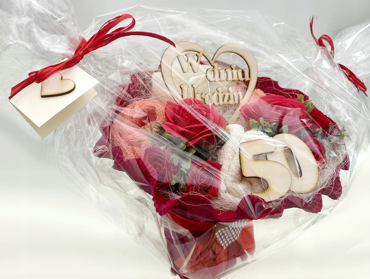 Не ищите дальше! Наш букет из полотенец представляет собой идеальное сочетание элегантности и функциональности. Вместо цветов, которые завянут, подарите букет из двух качественных полотенец, красиво украшенных мыльными цветами и деревянным сердцем.