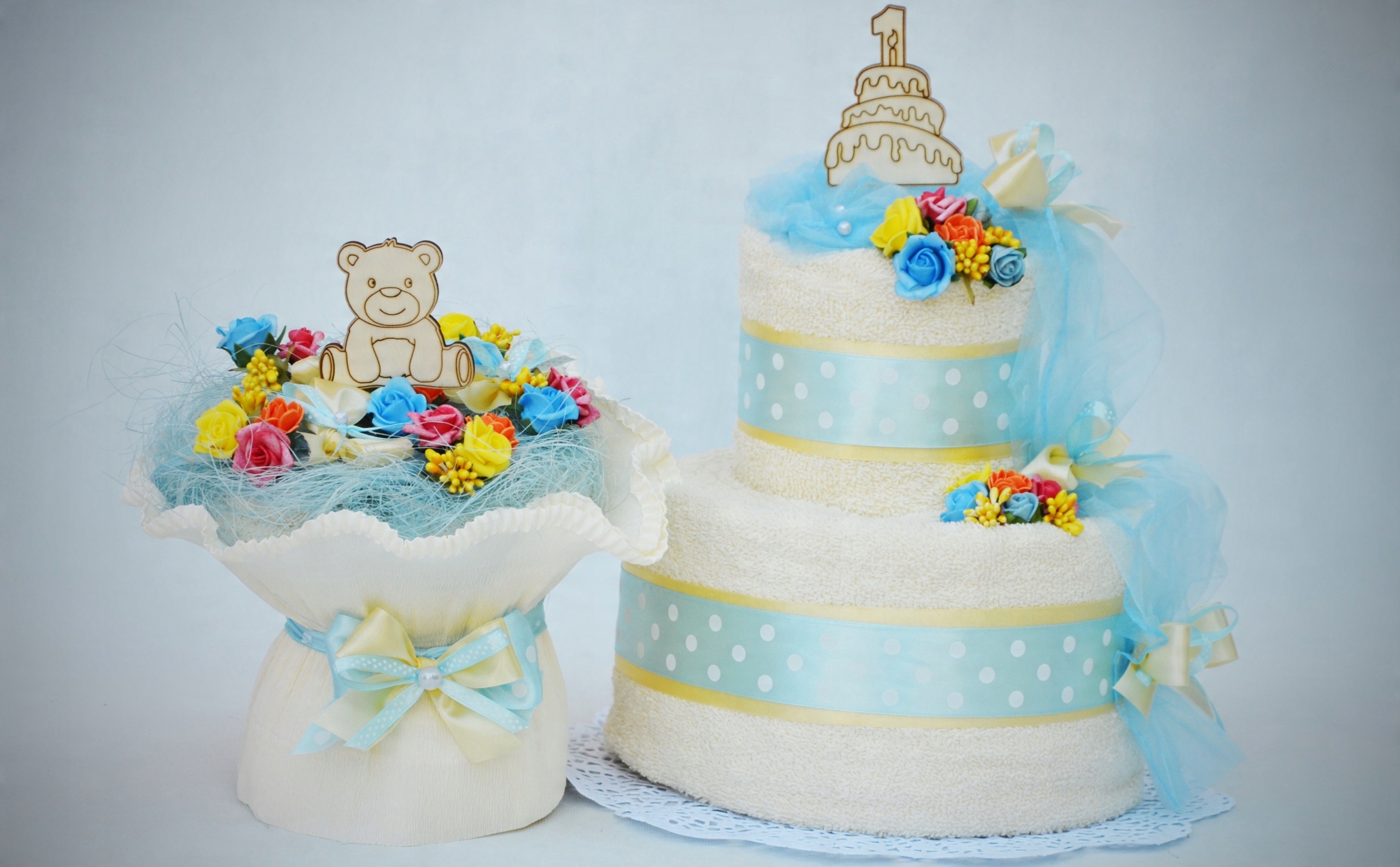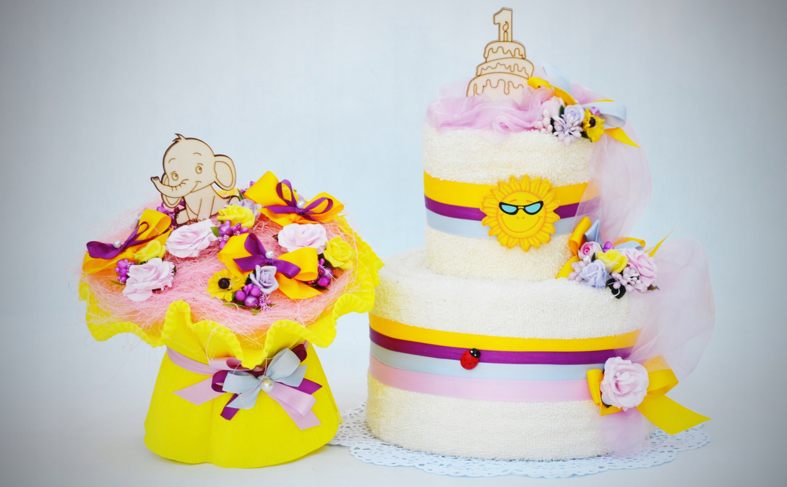Букет торта от полотенец в течение одного года для ребенка удара!