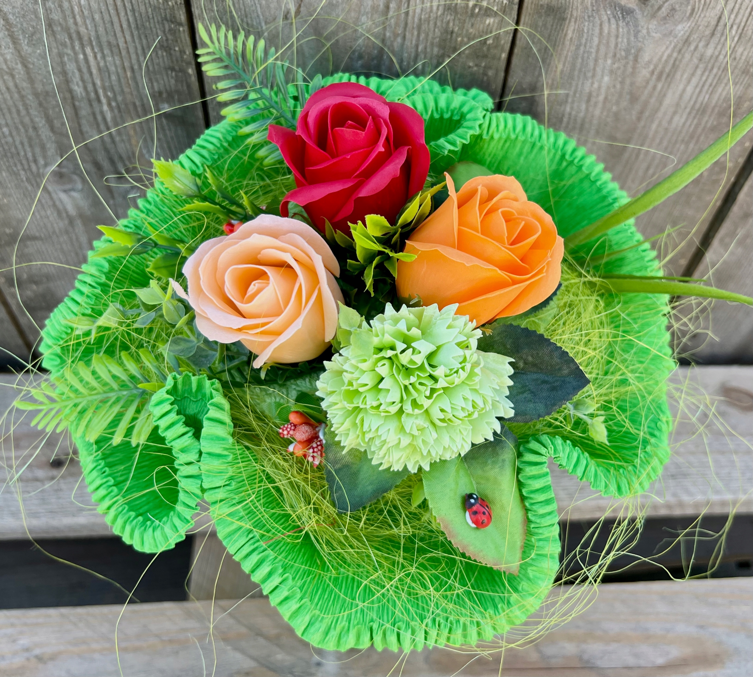 - зеленые аксессуары сделают букет живым,