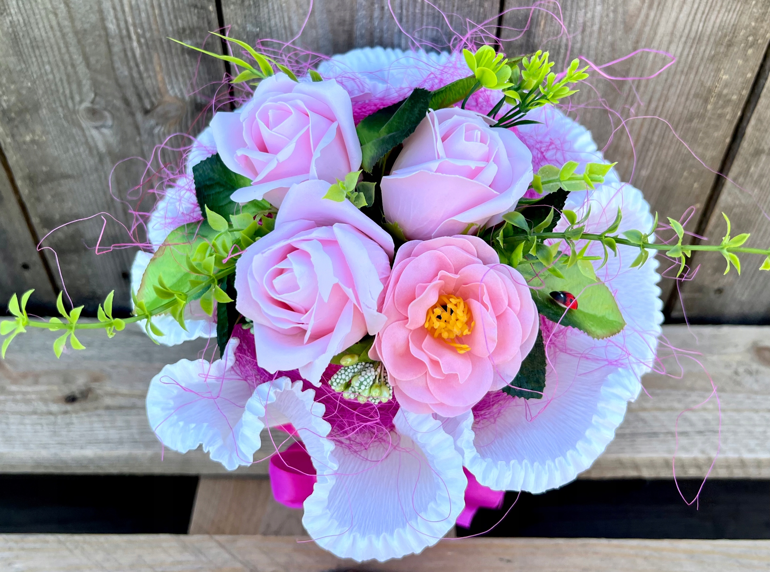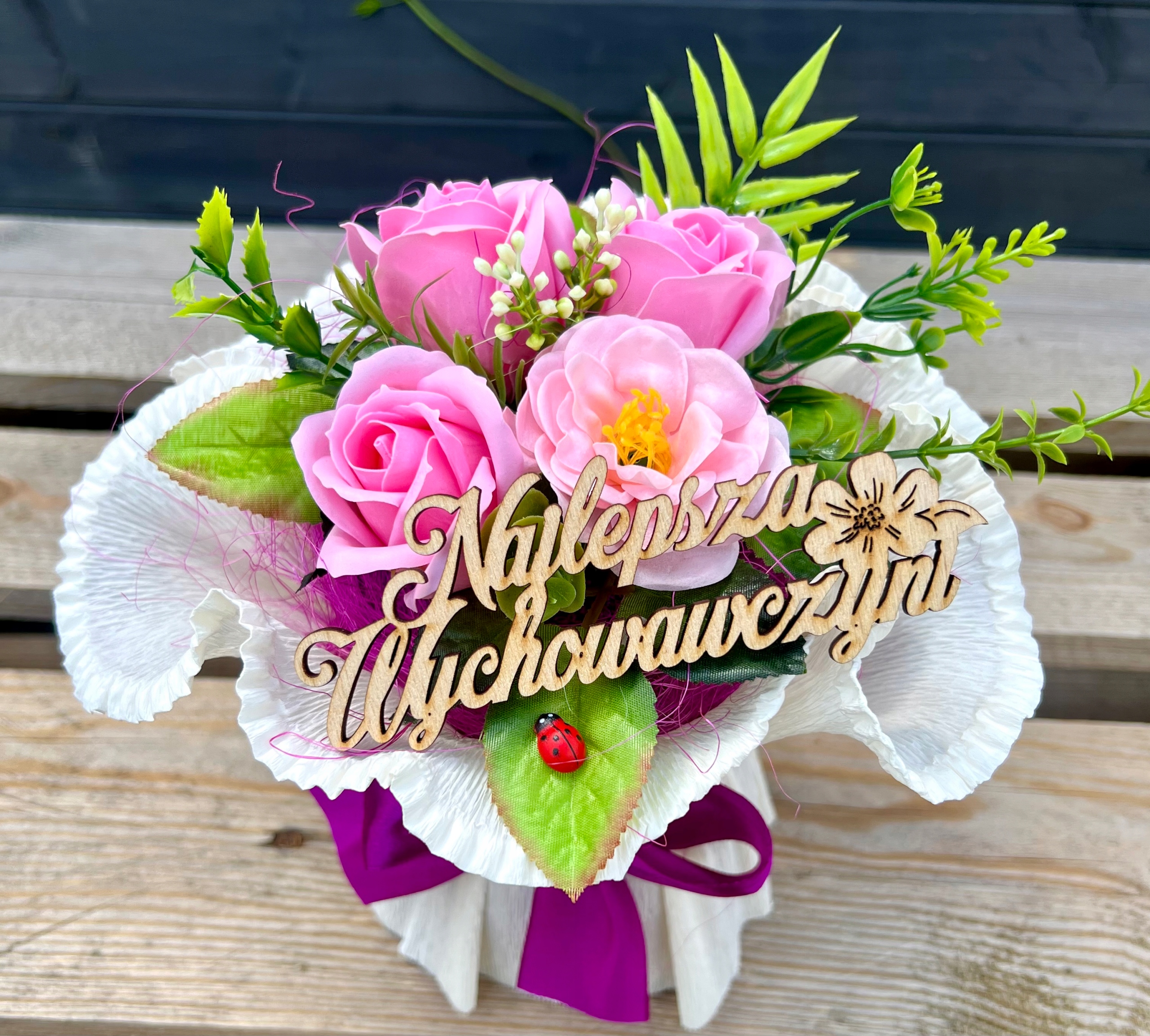 Bukiet z Ręcznika i Róż Mydlanych Mydlane Kwiaty dla wychowawczyni