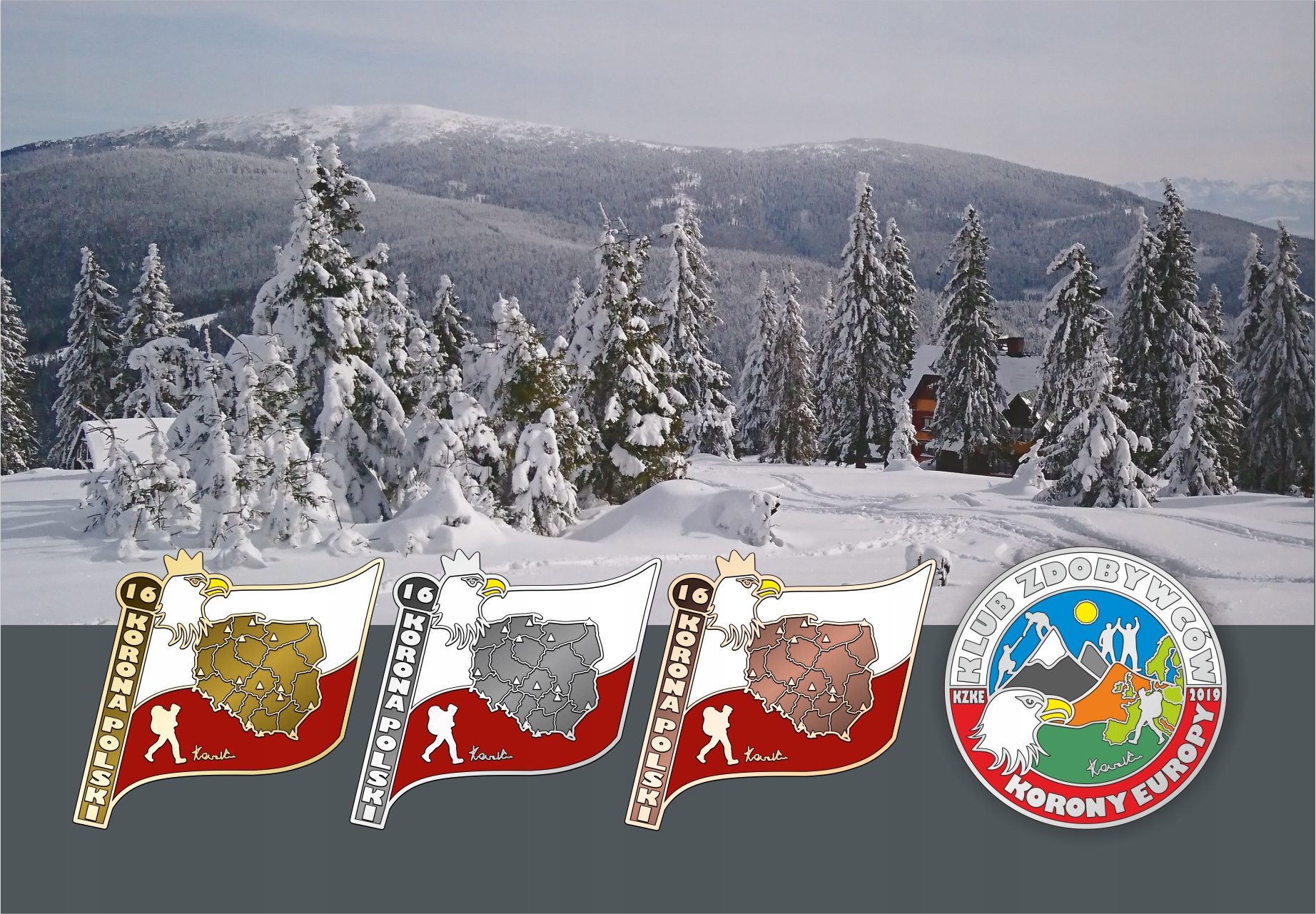 <р>10. Беседка 408 м над уровнем моря воеводство Мазовецкое воеводство <р>11. Лысица 614 м над уровнем моря воеводство Свентокшиское, <р>12. Бискупия Копа 889 м над уровнем моря воеводство Опольское воеводство <р>13. Тарница 1346 м над уровнем моря воеводство Подкарпатское воеводство, <р>14. Гора Пенчу Копчув (Пильско) 1542 м над уровнем моря воеводство Силезия, <р>15. Снежка 1603 м над уровнем моря воеводство Нижняя Силезия, <р>16. Рысы 2499 м над уровнем моря воеводство Малая Польша.бронзовый — за любые 5 вершин/холмов из списка (пункт 7),