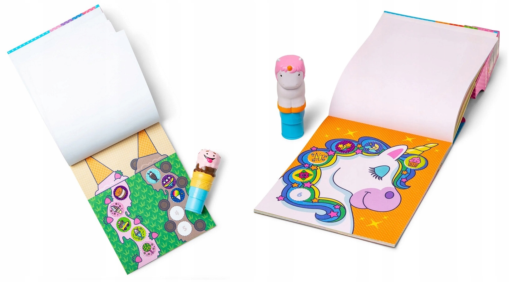 У листов есть разноцветные страницы со сладкими вкусовыми мотивами. Как будто он был почти одиноким, Stempelek также изготовлен в виде красочного мороженого. Отличное веселье гарантировано!