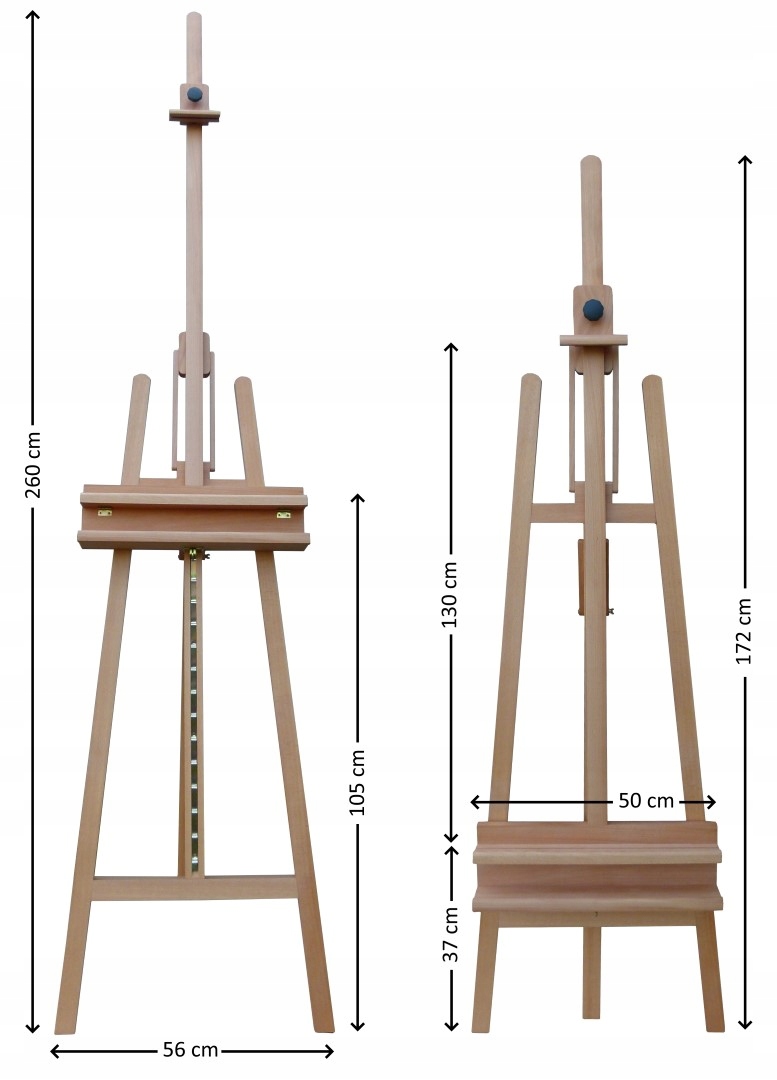 Мольберт может вмещает холст максимальной высотой примерно 130 см.