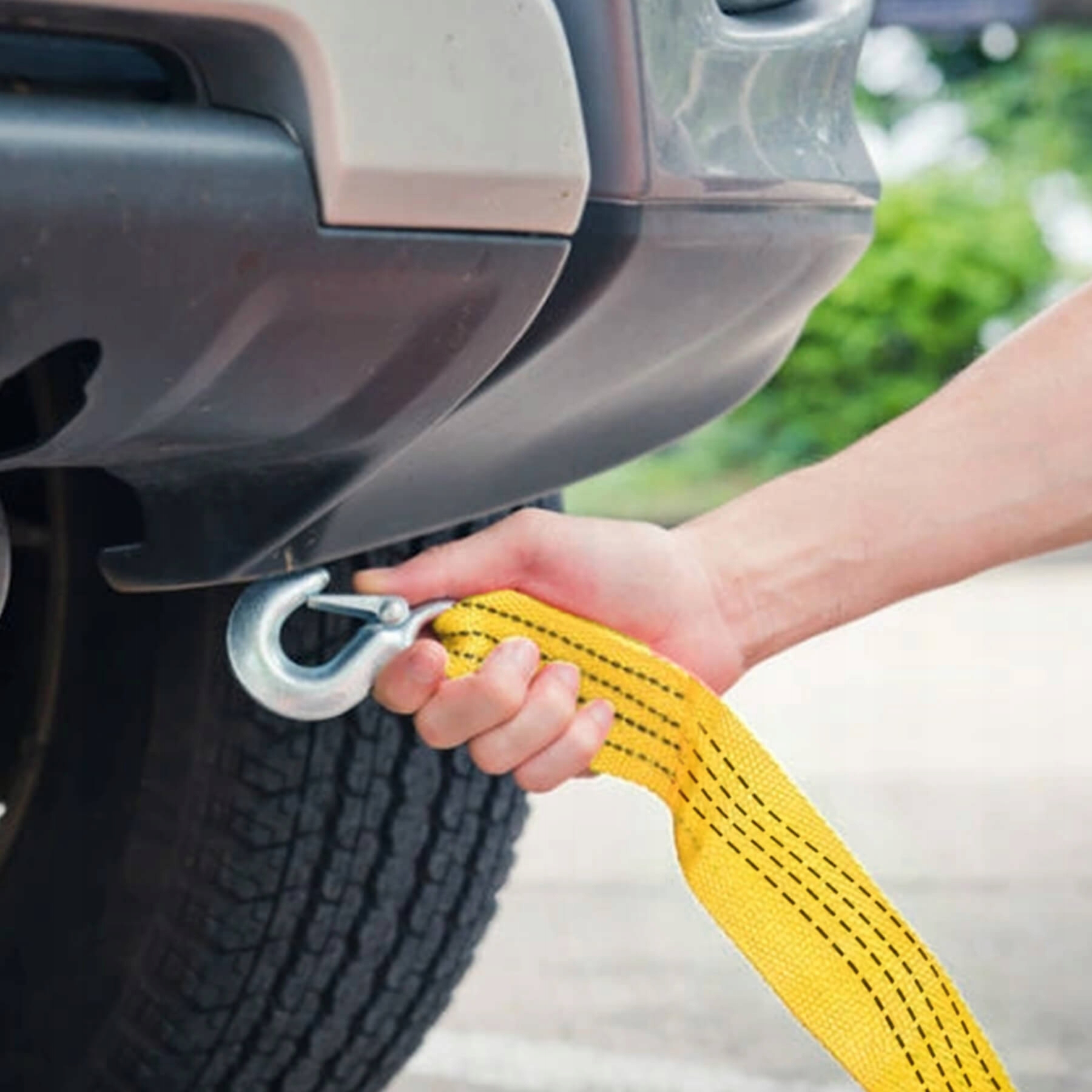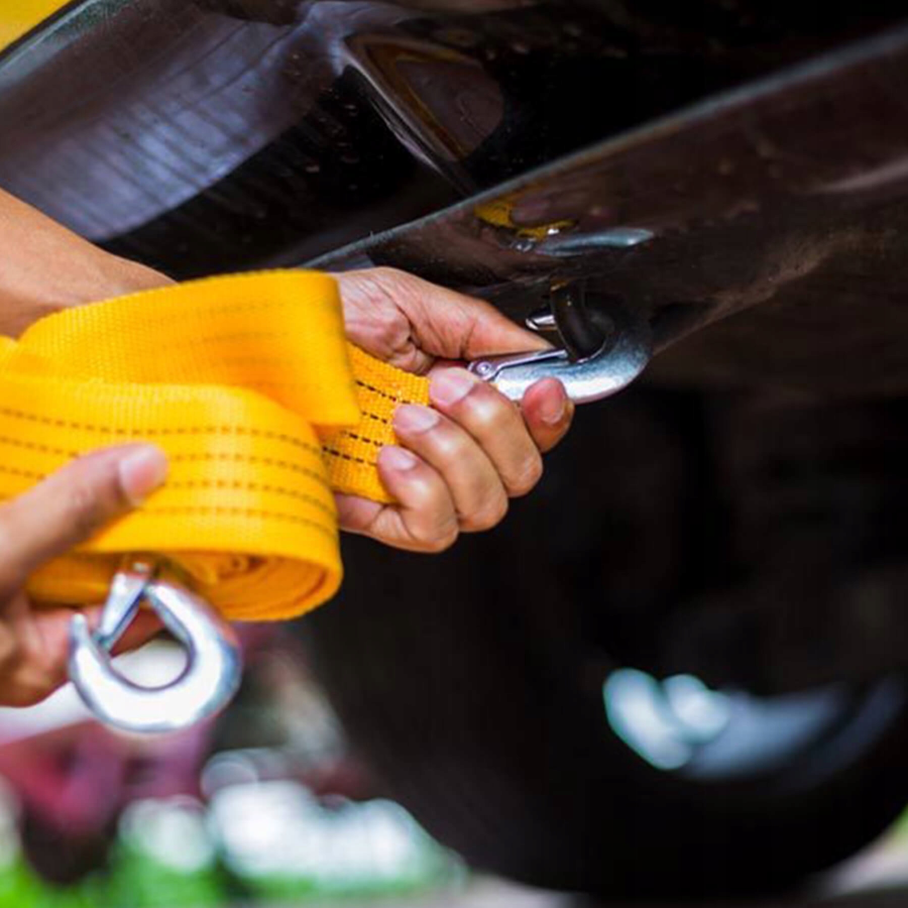 Тягово-сцепной ремень оснащен двумя буксирными крюками, рассчитанными на максимальную нагрузку 3 тонны, что крайне важно в случае буксировки более тяжелого легкового автомобиля. В случае поломки автомобиля и необходимости эвакуировать поврежденное транспортное средство важно как можно быстрее убрать транспортное средство с дороги, именно поэтому наши крючки имеют форму карабина, благодаря которому мы можем застегнуть и быстрее отстегивать трос от транспортных средств, экономя время.