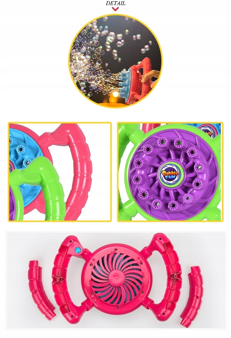 Дети любят пузыри, и машина будет генерировать неограниченное количество пузырей, что делает наших детей еще более веселыми и продолжительными.