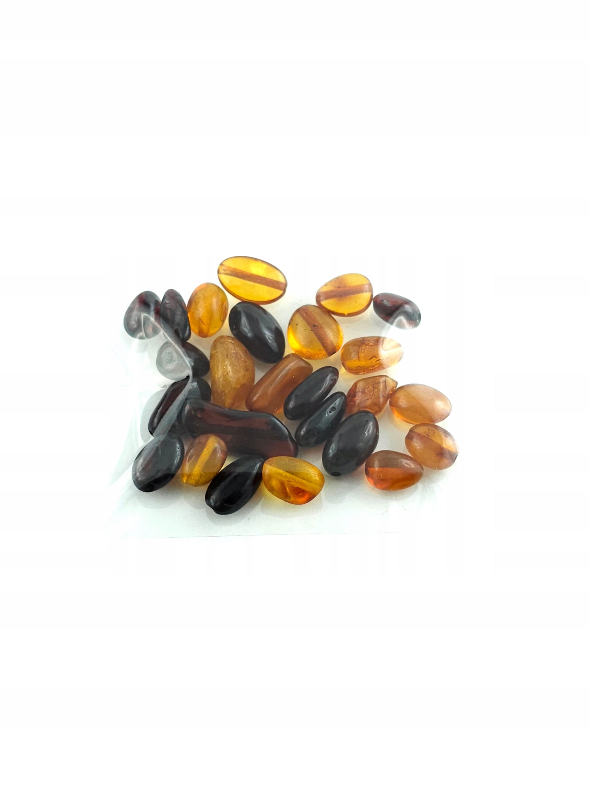 Bursztyn bałtycki naturalny poler wiercony 25 sztuk wiśnia koniak fasolka