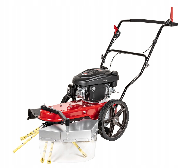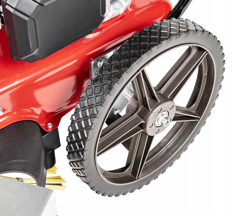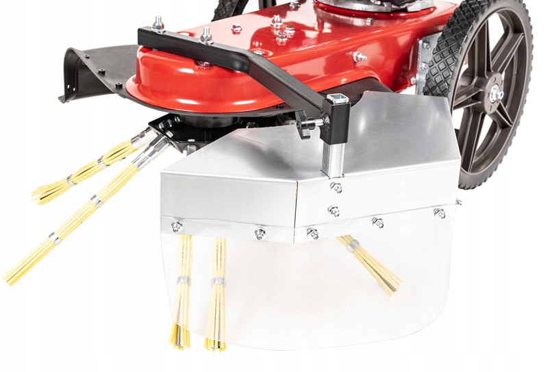 щетки представляют собой комбинацию металлических стержней и пластика, что обеспечивает очень высокое качество работы. Большие подшипники будут способствовать маневрированию сорняка. Крышка слева от кисти предназначена для ловли примесей, летящих из -под рабочего устройства.