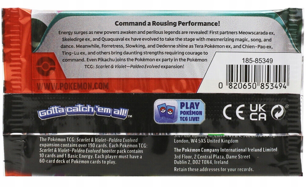 - 1 бустер ККИ покемонов Scarlet & Violet — Paldea Evolved (В сумке находятся 10 карт из Paldea Эволюционированное расширение плюс 1 карта Энергии. Кроме того, оно содержит карту с уникальным кодом, который позволит вам открыть бустер в онлайн-версии Pokemon TCG Live.)