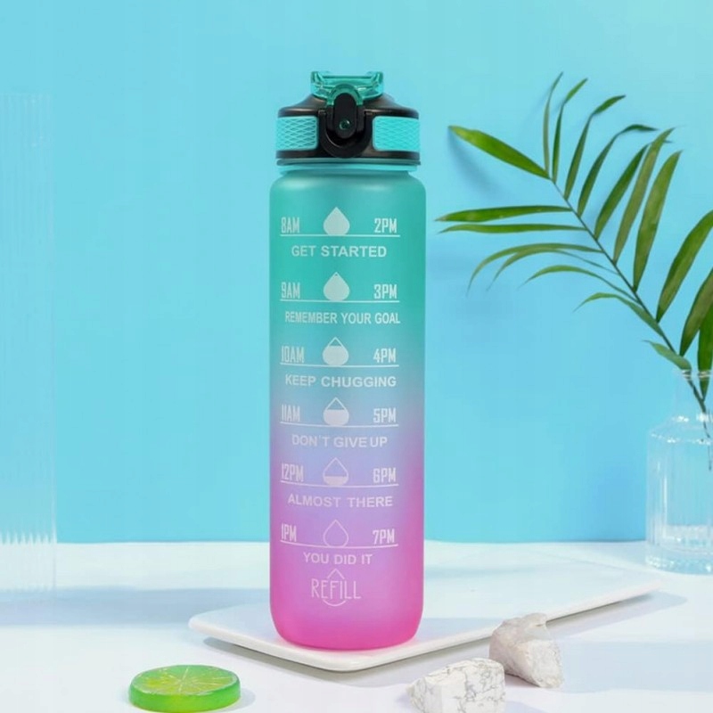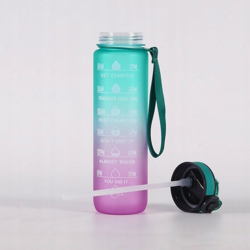 BUTELKA NA WODĘ Bidon z Miarką i Słomką 1L Siłownia MOTYWACJA Zieleń Róż