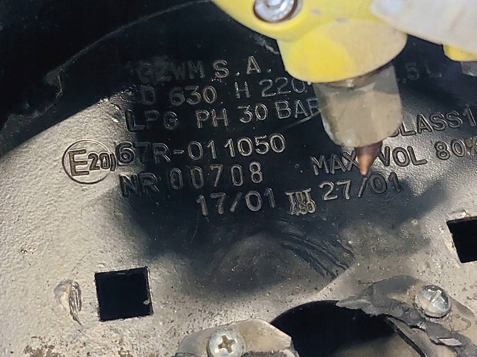 BUTLA GAZOWA LPG 52,5L 2027R W KOŁO PAPIER + ZAWÓR