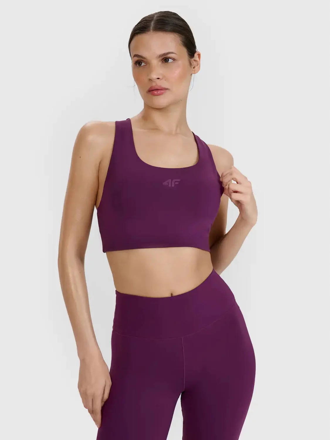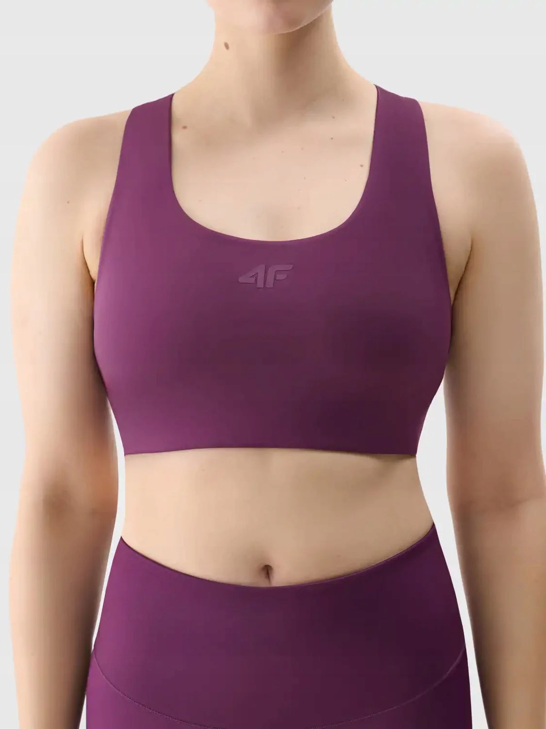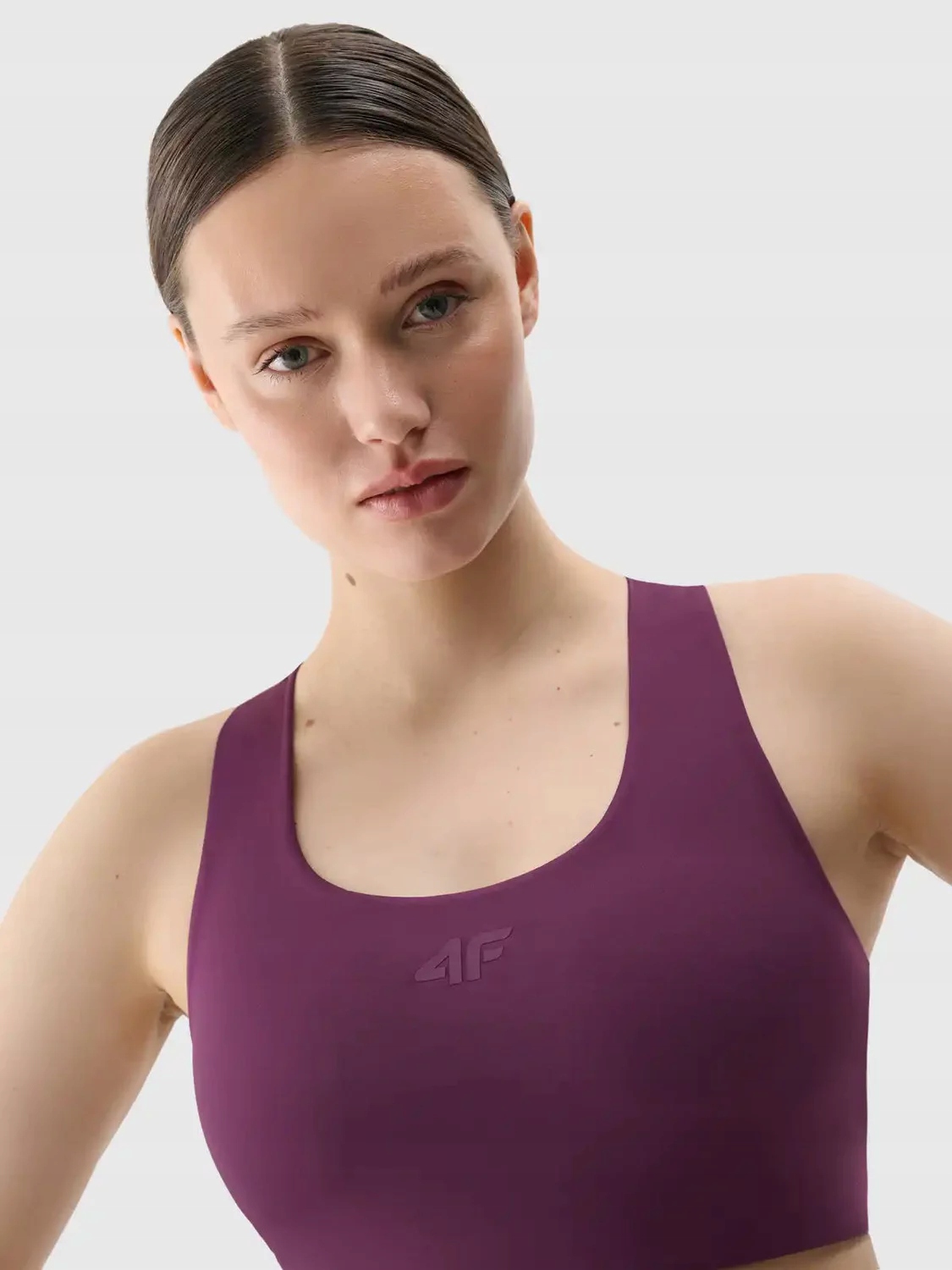 Женский спортивный бюстгальтер 4F обеспечивает непревзойденный комфорт и свободу движений во время каждой тренировки. Благодаря гибким материалам и быстросохнущим волокнам по технологии 4FDry он обеспечивает оптимальное отведение влаги, позволяя максимально сконцентрироваться во время тренировки. Приталенный крой, широкие бретели и круглый вырез подчеркивают женственный силуэт, а свободная спина гарантирует полную подвижность плеч. Двухслойная конструкция и мягкие съемные чашки обеспечивают дополнительную поддержку и комфорт. Прочное, но мягкое плетение интерлок обеспечивает идеальную посадку бюстгальтера на теле, а логотип спереди добавляет стильный акцент. Идеально подходит для йоги, пилатеса или повседневной деятельности.