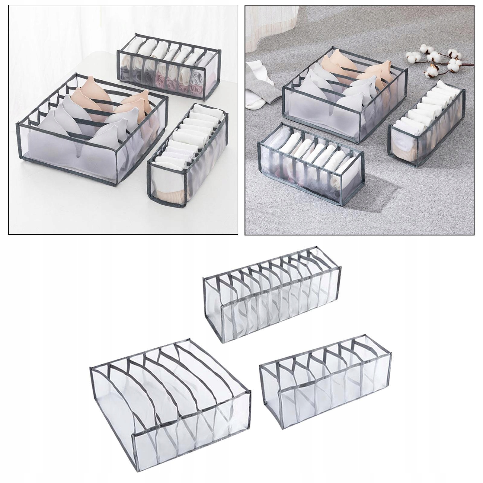 Бюстгальтер, нижнее белье, галстук, ящик для хранения, разделитель, органайзер, ящик для гардероба, 3 шт., серый