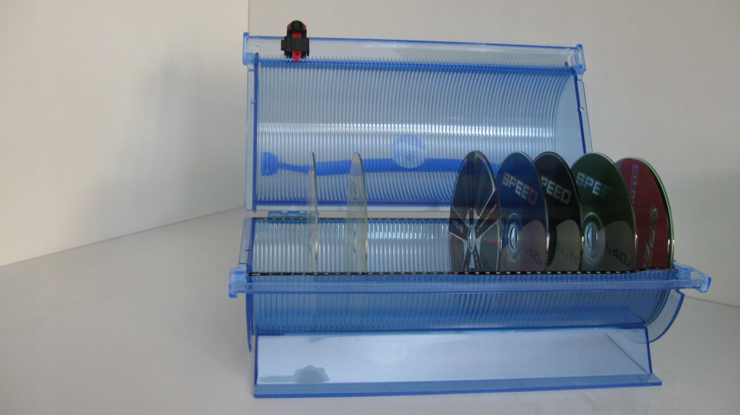 Коллективная коробка на 80 CD/DVD синего цвета со ползунком для выбора выбранного диска