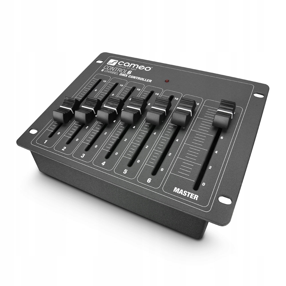 Продукт имеет 6 ползунков для отдельных каналов DMX и основного ползунка (мастер). Контроллер может питаться с помощью внешнего источника питания или батареи. 3-контактный розетка XLR служит выходом DMX. Устройства имеют красный диод, который служит индикатором мощности. Cameo Control 6 - это простое, легкое устройство с высокой функциональностью с простой работой.