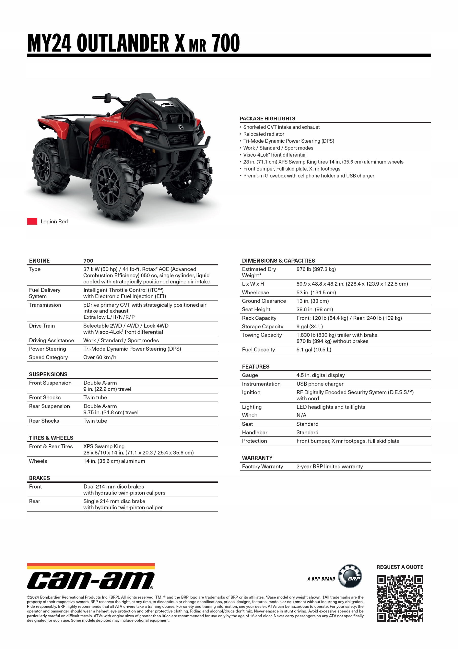 can-am outlander x mr 700 модели года 2024