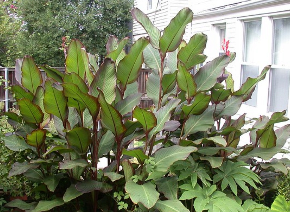 Музифолия Гранде (Musifolia Grande) — чрезвычайно эффектный сорт с огромными банановидными листьями темно-зеленого цвета с фиолетовым отливом, которые придают саду экзотический вид даже без цветов. Достигает внушительной высоты 2–2,5 м, создавая эффектный фон для клумбы или живой зеленой стены. Цветки красные, хотя главную роль здесь играют листья!