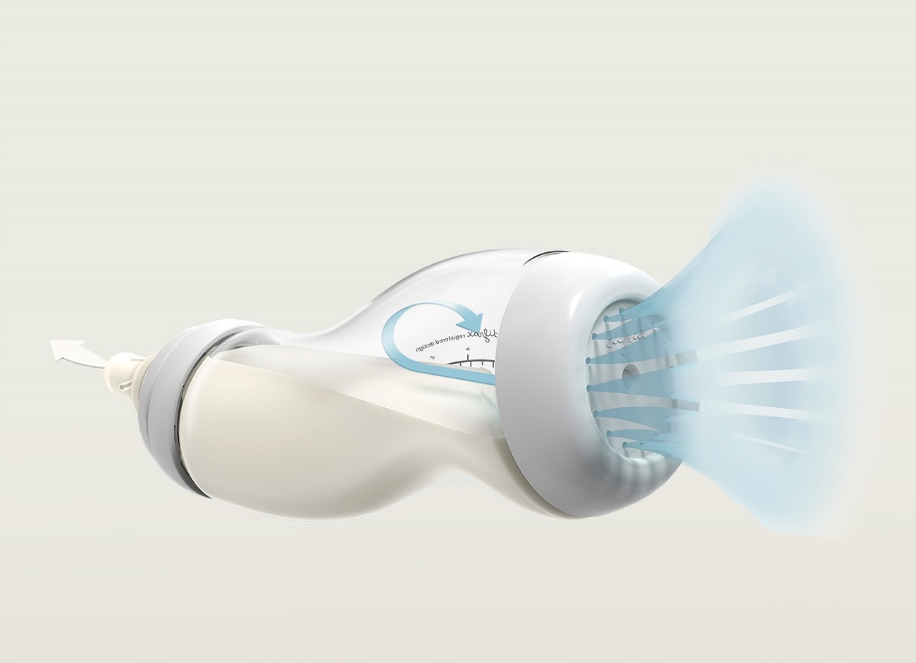 Бутылочка поддерживает ротационное кормление, что позволяет использовать разные положения в течение дня (на боку, лицом к лицу, осуществляющему уход, классическое), что имеет решающее значение для снижения частоты колик. Антиколиковый клапан и отверстия в нижней части эффективно удаляют воздух, обеспечивая постоянный приток молока. Благодаря этому ребенок может пить плавно, без перебоев и заглатывания воздуха. Сочетание этих функций создает эффективную антиколиковую систему, снижающую риск возникновения колик, спазмов и дискомфорта в животе.