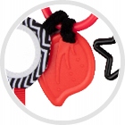 Игрушка поддерживает развитие ребенка с первых дней. Она стимулирует зрение благодаря красному и черному цветам, которые ребенок видит первым. Подвеска также прекрасно стимулирует развитие зрительной, слуховой и двигательной координации ребенка.
