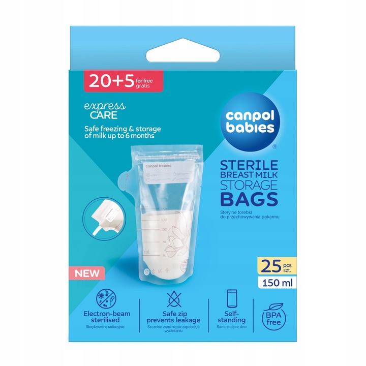CANPOL СТЕРИЛЬНЫЕ ПАКЕТЫ МЕШКИ ДЛЯ ЗАМОРАЖИВАНИЯ ПИЩЕВОЕ МОЛОКО 70/001