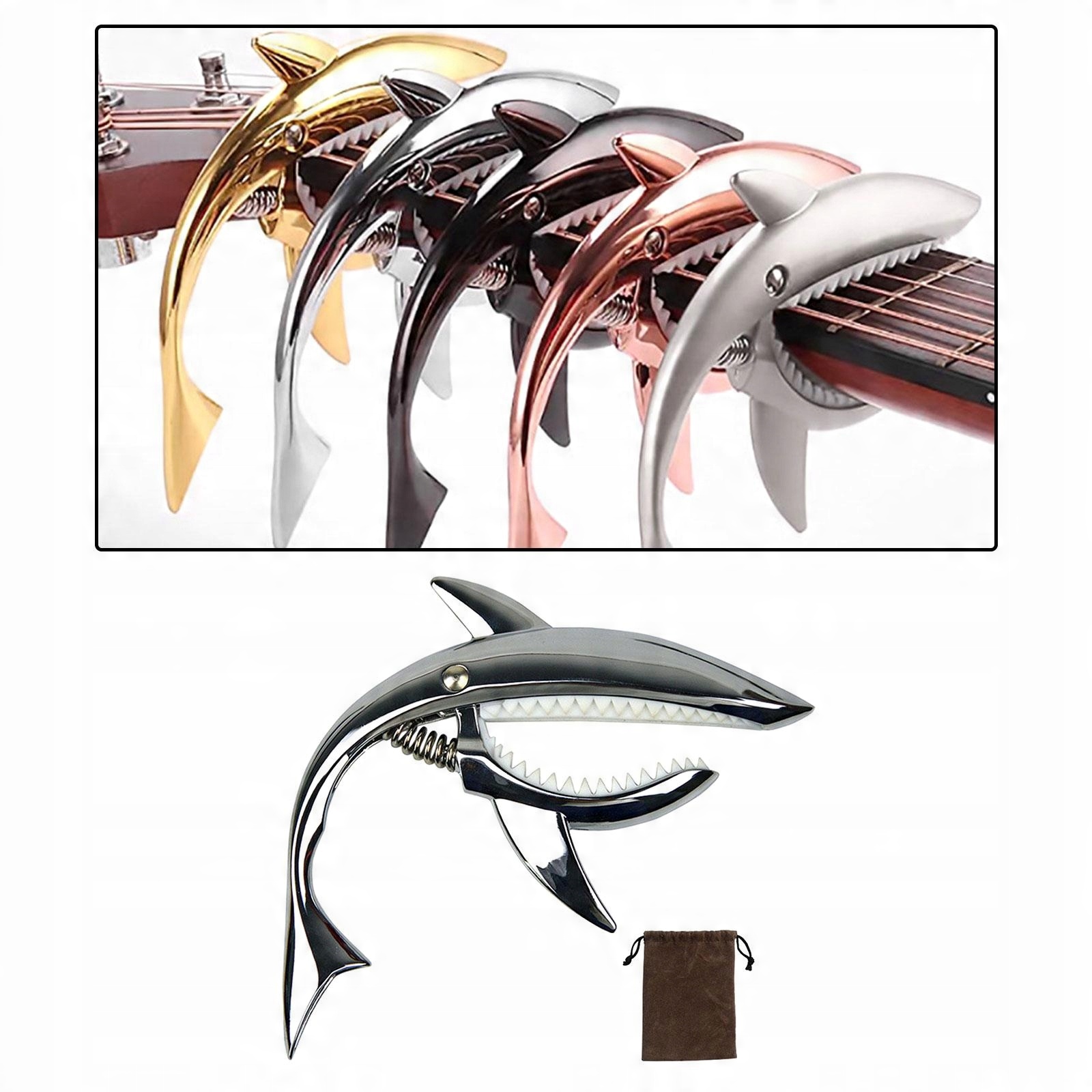 Capo Spring Capo для гитары акулы с бархатным корпусом, серебряный цинк сплав