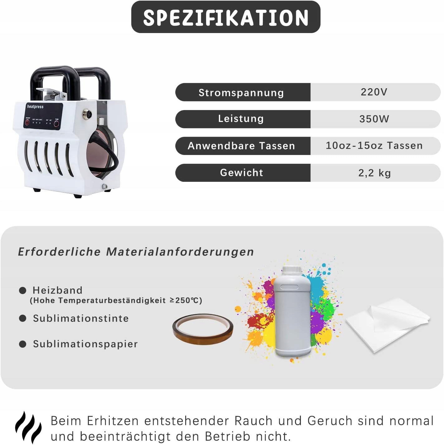 CAPTOK Мини-пресс для кружек Пресс для кружек с нагревателем для сублимационной печати 10-15 унций (белый)