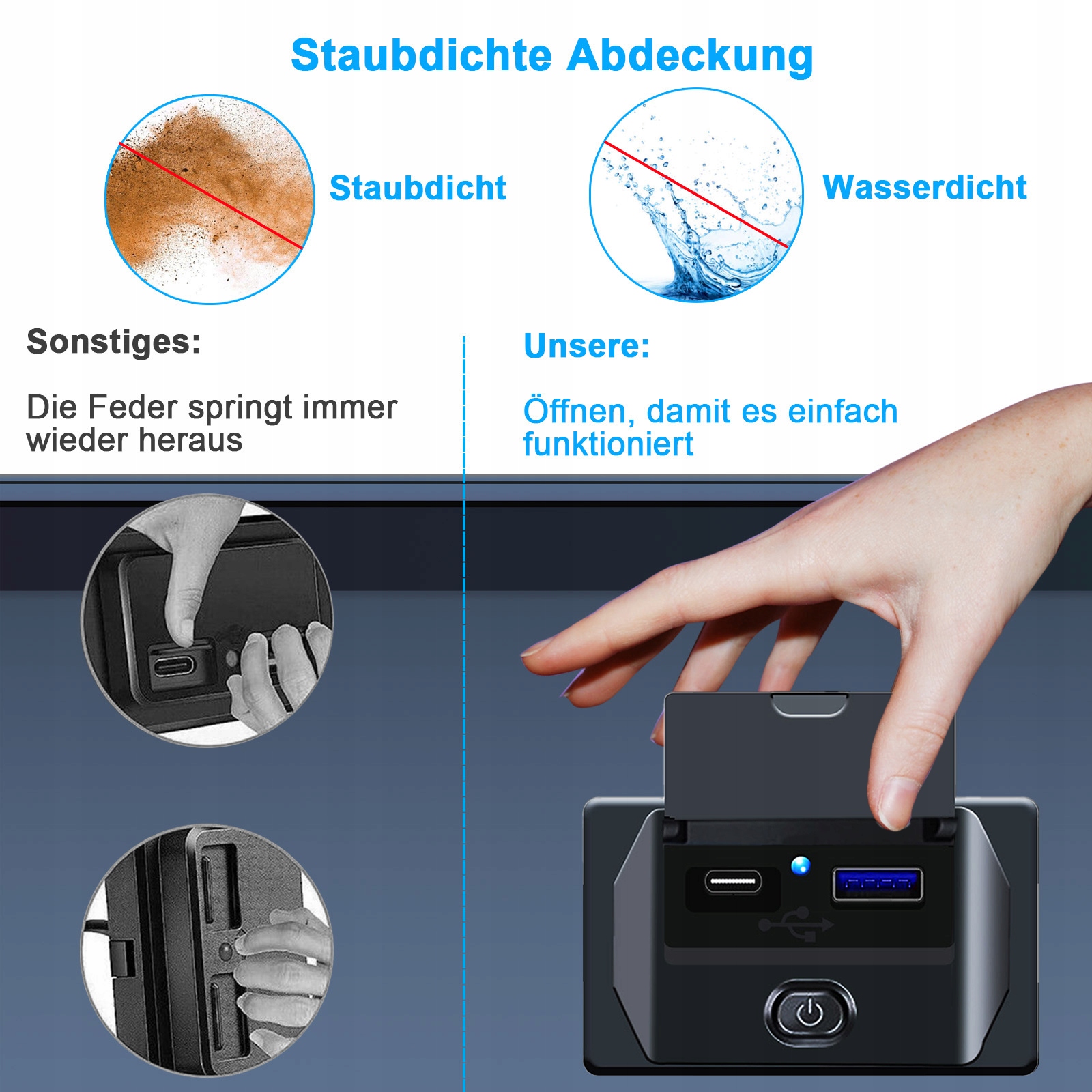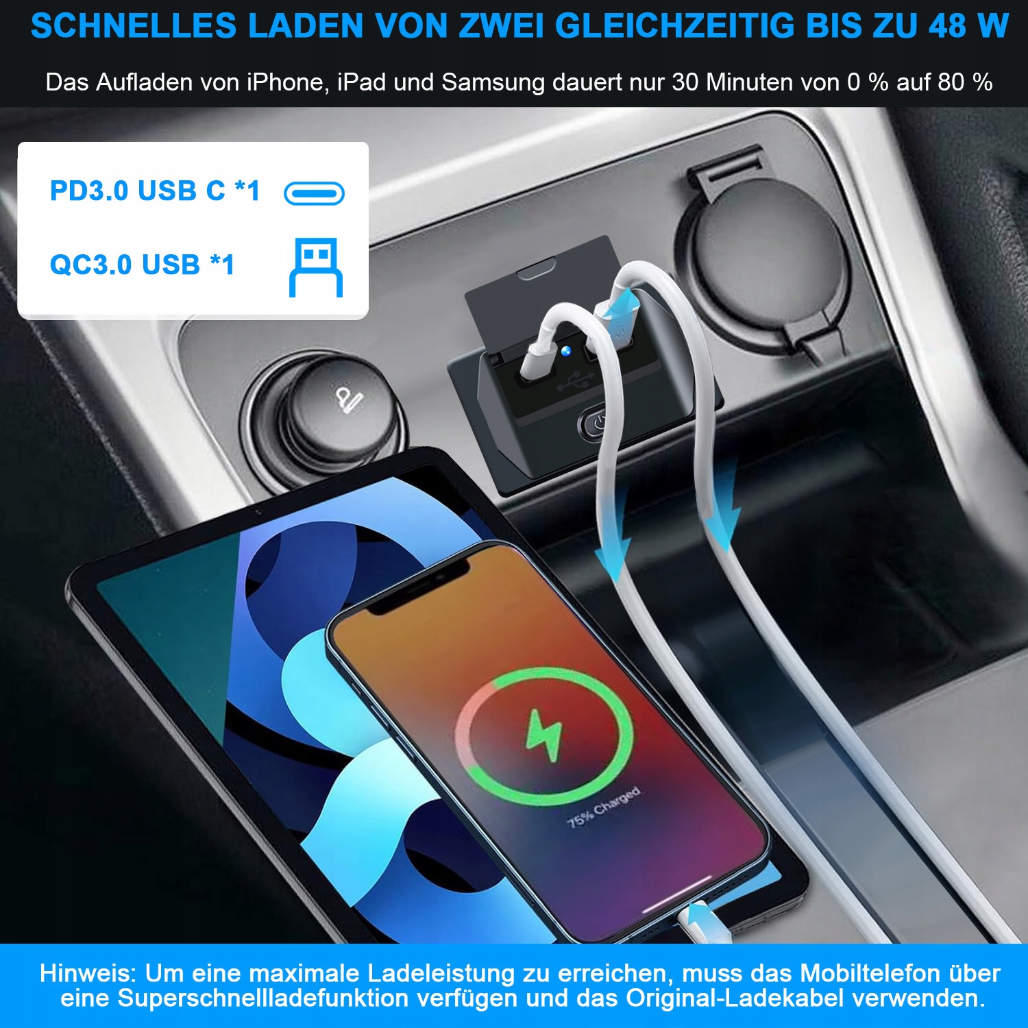 - 1x двух -порт -зарядка QC 3.0 + PD 3.0 с переключателем (черный + синий свет)