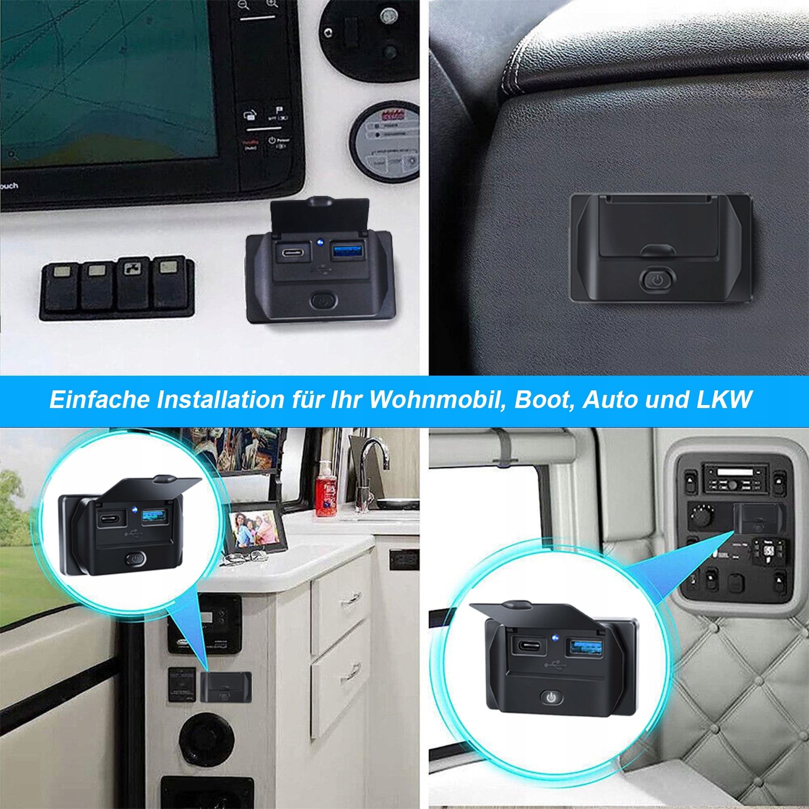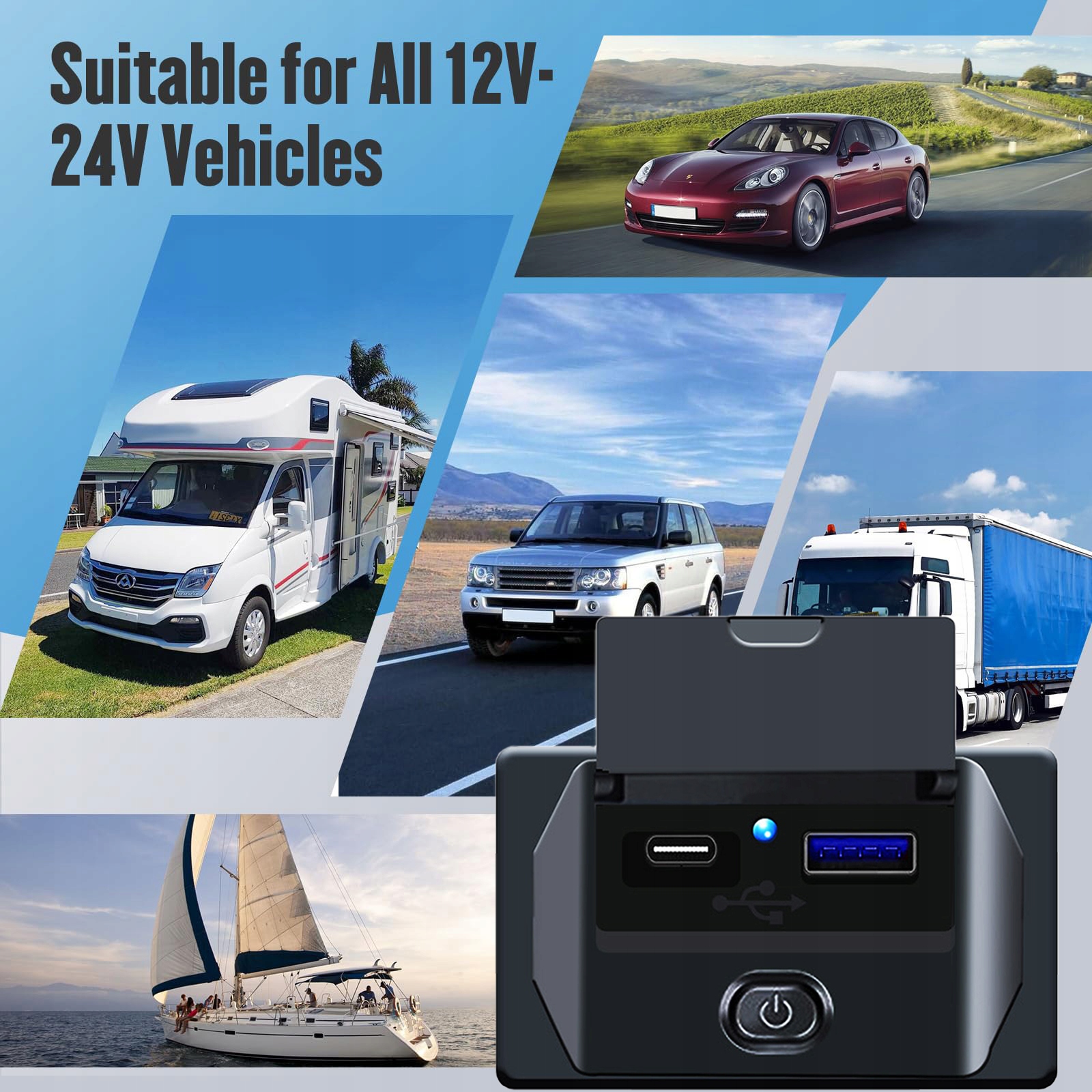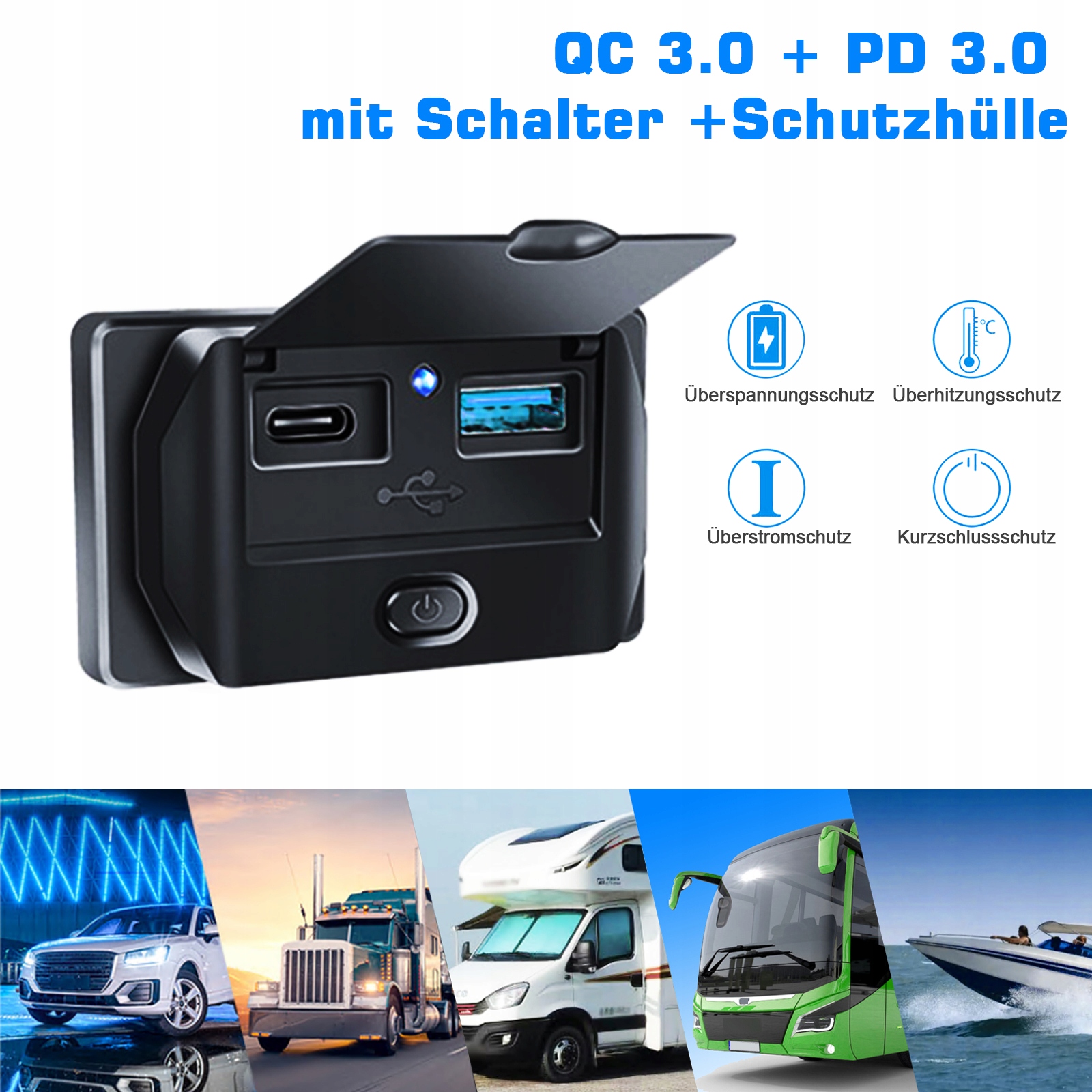 PD3.0 I QC3.0 Двойная зарядная розетка 12V CAR Зарядное устройство 18W QC3.0 USB и 30 Вт PD Тип C Быстрая зарядка водонепроницаемого мобильного телефона с переключением на автомобиль 12 В / 24 В ладзи Кампер Макс 48 Вт