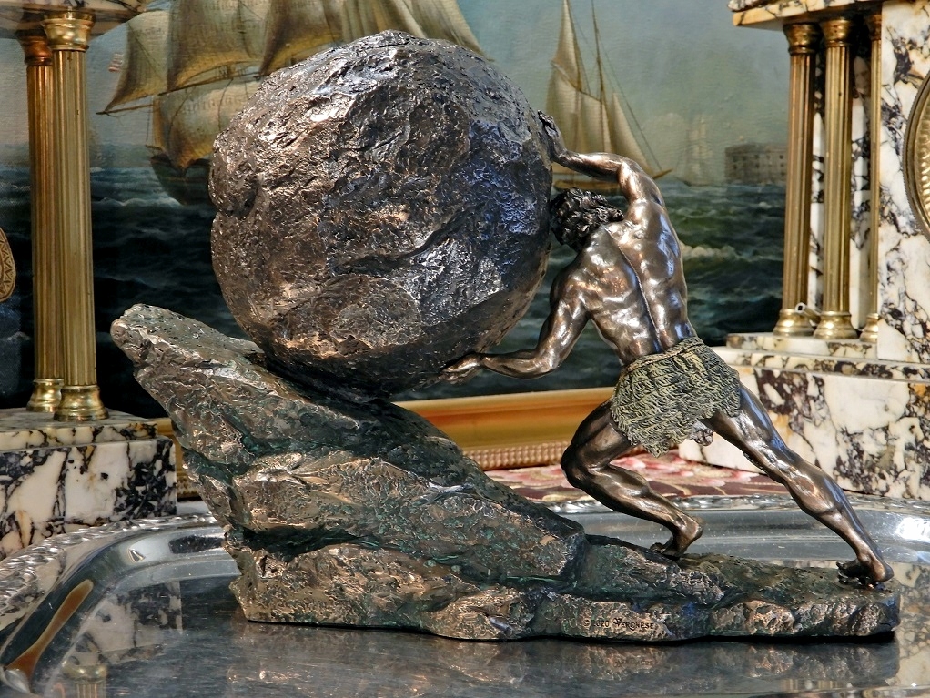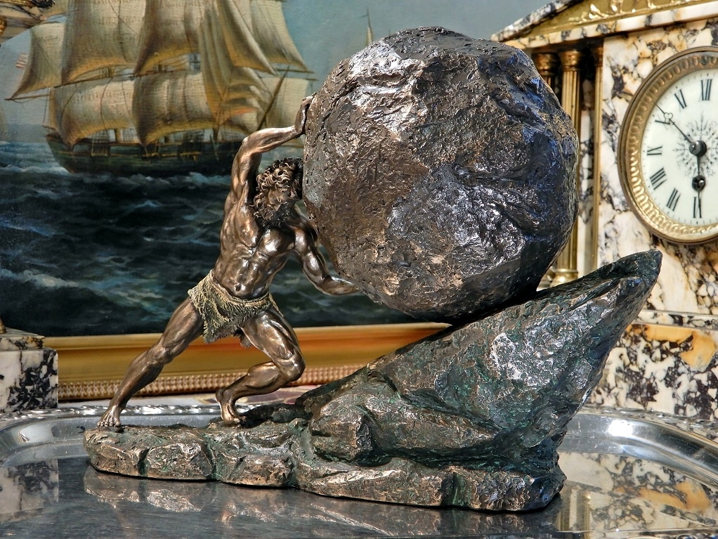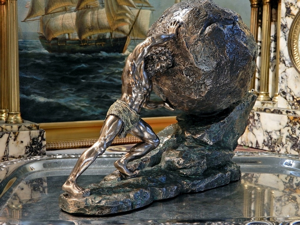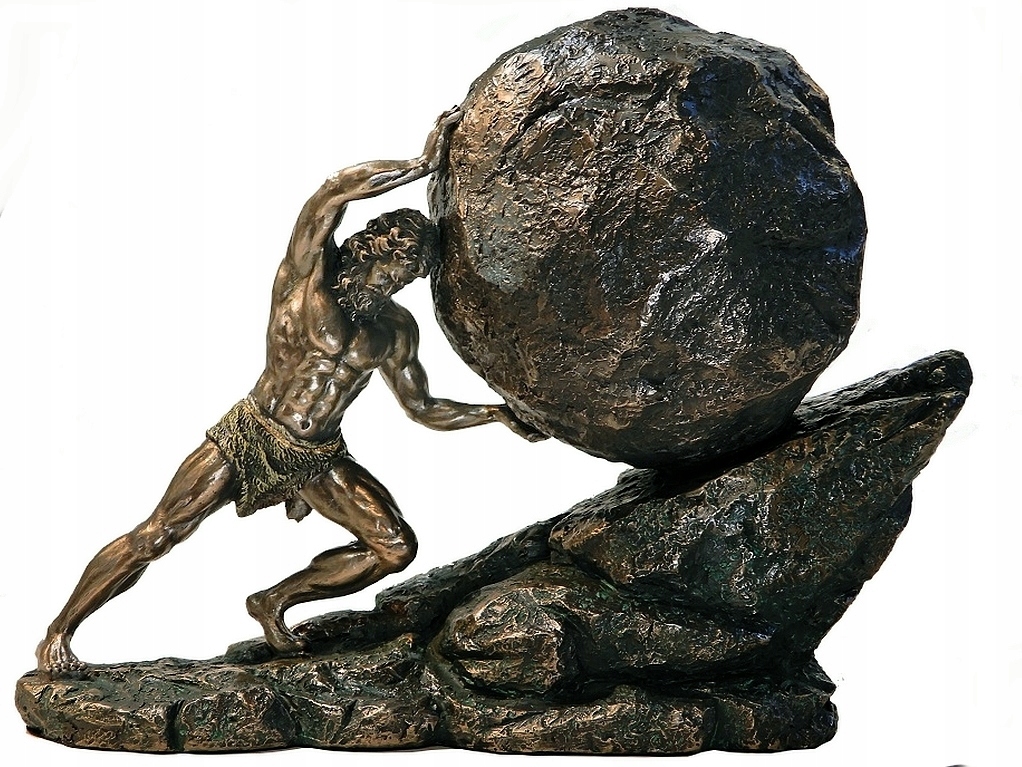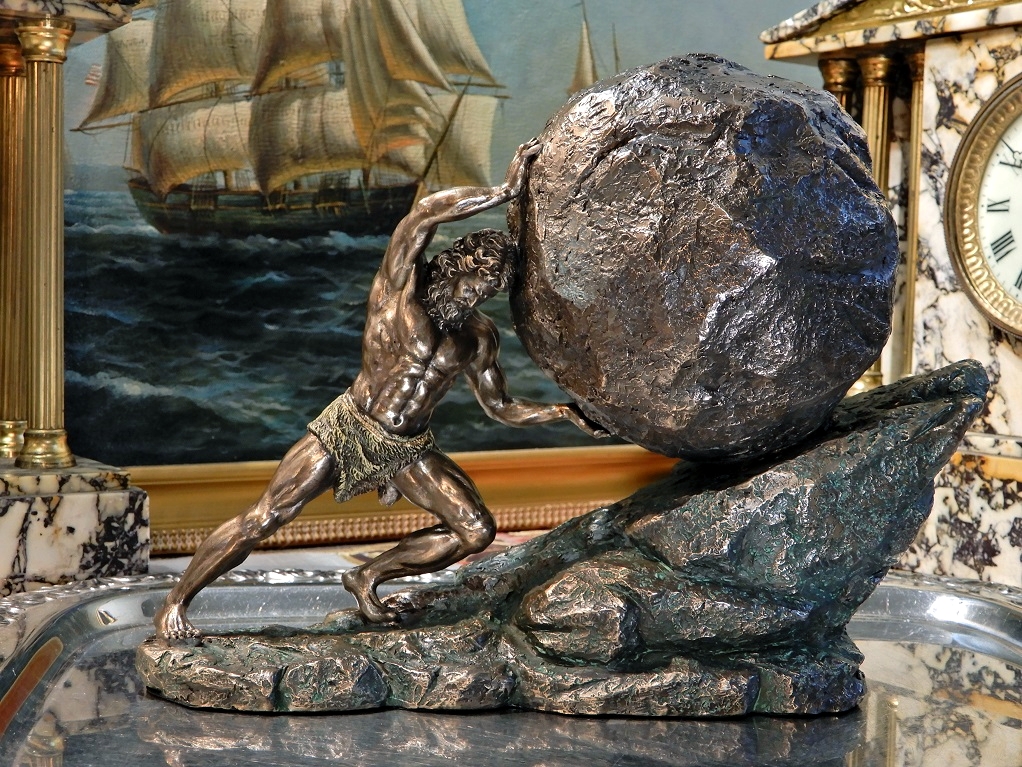 Приглашаю Вас приобрести замечательную статуэтку, изображающую мифологического царя Сизифа, катящего камень. Символ бесполезных, бессмысленных и вечных усилий.