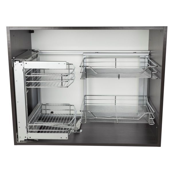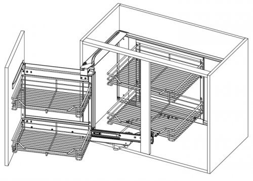 - Corner Magic оснащен шариковыми направляющими с системой полного выдвижения и системой закрытия-закрытия, а также функцией бесшумного закрытия шкафа