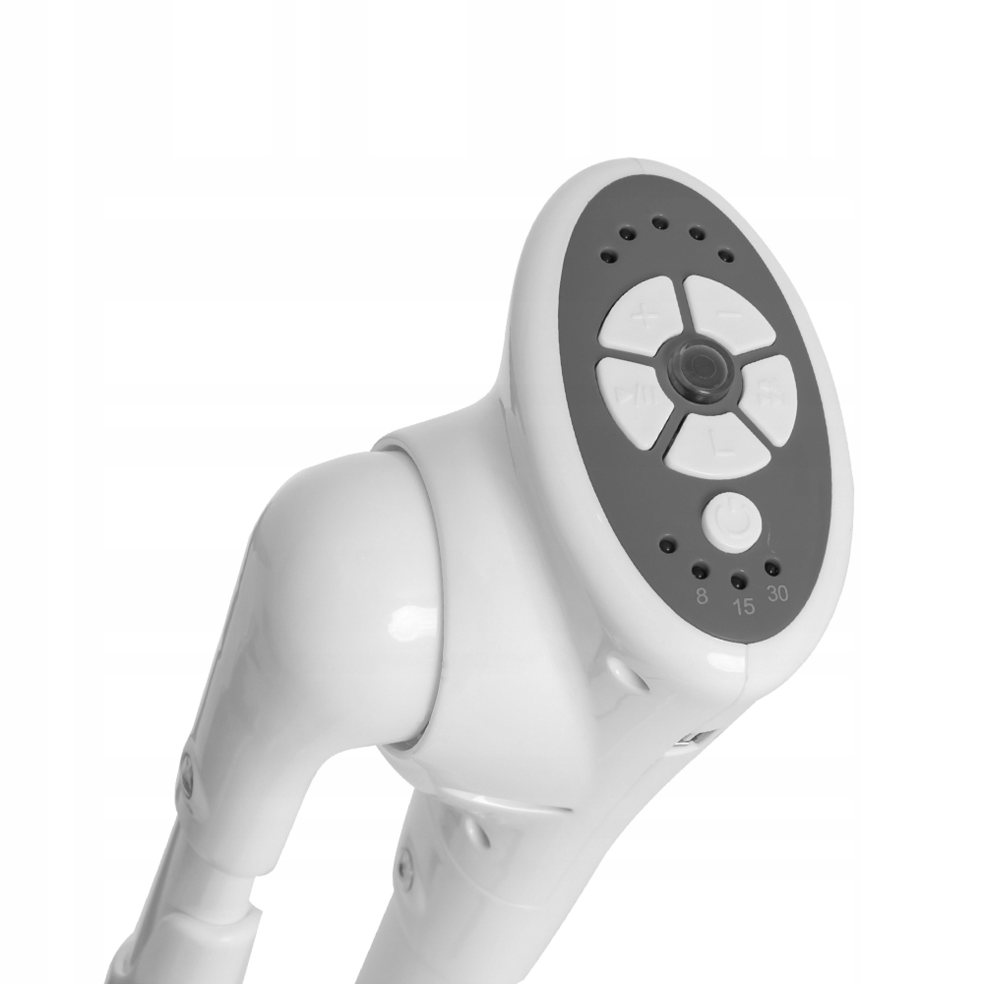 Чтобы преобразовать стул в рокер , опустите сиденье и нажмите кнопку, которая выпускает замк. Можно установить таймер для раскачивания на 8, 15 и 30 минут.