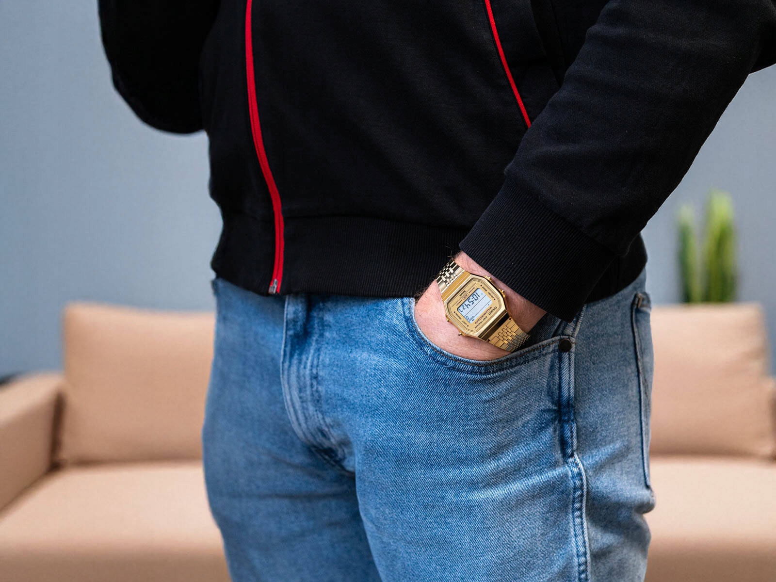 Эта модель оснащена цифровым дисплеем, показывающим время, день недели и день недели. месяц.