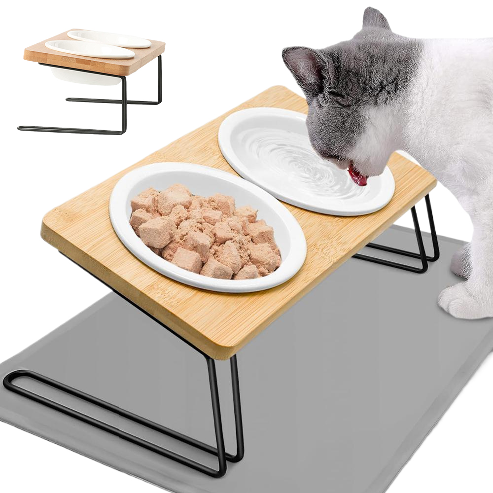 【Легко ухаживать за керамической кошачьей чашкой】 h1> - Кошачья чаша изготовлена из прочной керамики, не содержит вредных веществ, устойчива к тепло и коррозии, безопасной и здоровой, а деревянная рама изготовлена из экологического натурального бамбука. Стальные миски для кошек, керамические миски для кошек менее восприимчивы к бактериям и могут предотвратить черную бороду от котенка.