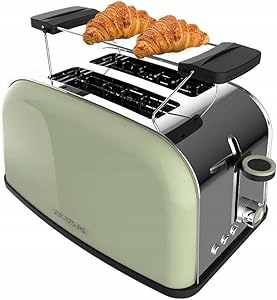 Тостер CECOTEC 850 Green обеспечивает равномерное выпекание хлеба с обеих сторон за счет центрирования ломтиков. Он также предлагает множество практических функций. Например, функция разморозки хлеба. Высококачественные поверхности из нержавеющей стали обеспечивают долговечность и элегантность.