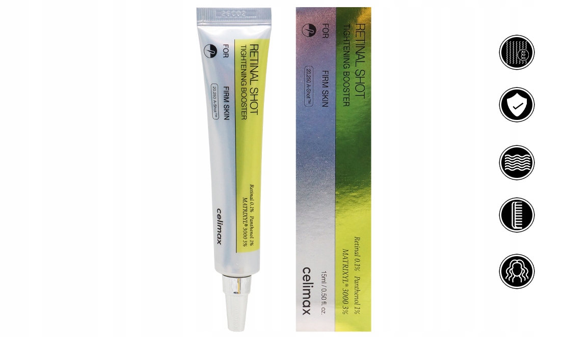 Celimax Retinal Shot Tightening Booster – локальный бустер с высоким содержанием активных ингредиентов, созданный для интенсивного, целенаправленного ухода. Обогащенный ретином, ниацинамидом, пантенолом и аденозином, бустер мгновенно улучшает текстуру кожи, уменьшает несовершенства и противодействует признакам старения.