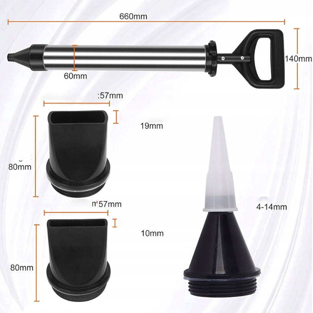 Мощная сила всасывания: Современный высококачественный резиновый поршень идеально вписывается в корпус из нержавеющей стали, что обеспечивает низкое сопротивление и высокую силу всасывания, что облегчает всасывание цемента.