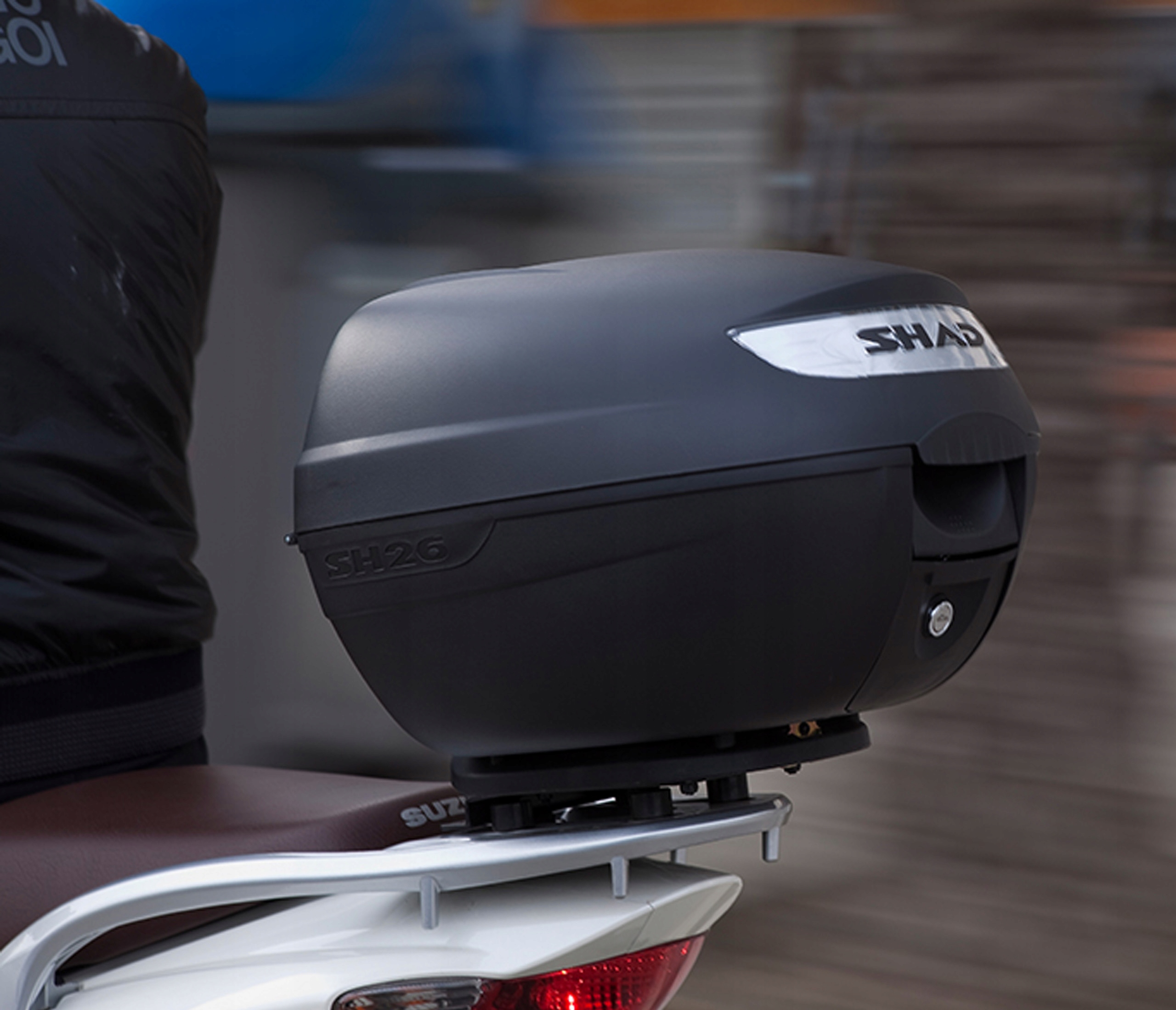 ОПИСАНИЕ: ВЕРХНИЙ КЕЙС SHAD SH26. СДЕЛАН ИЗ ВЫСОКОКАЧЕСТВЕННОГО ПЛАСТИКА, СИСТЕМА ЗАМКА ДВОЙНЫМ НАЖАТИЕМ. ВОДОНЕПРОНИЦАЕМАЯ СИСТЕМА УПЛОТНЕНИЯ. МОНТАЖНАЯ ПЛАСТИНА В КОМПЛЕКТЕ