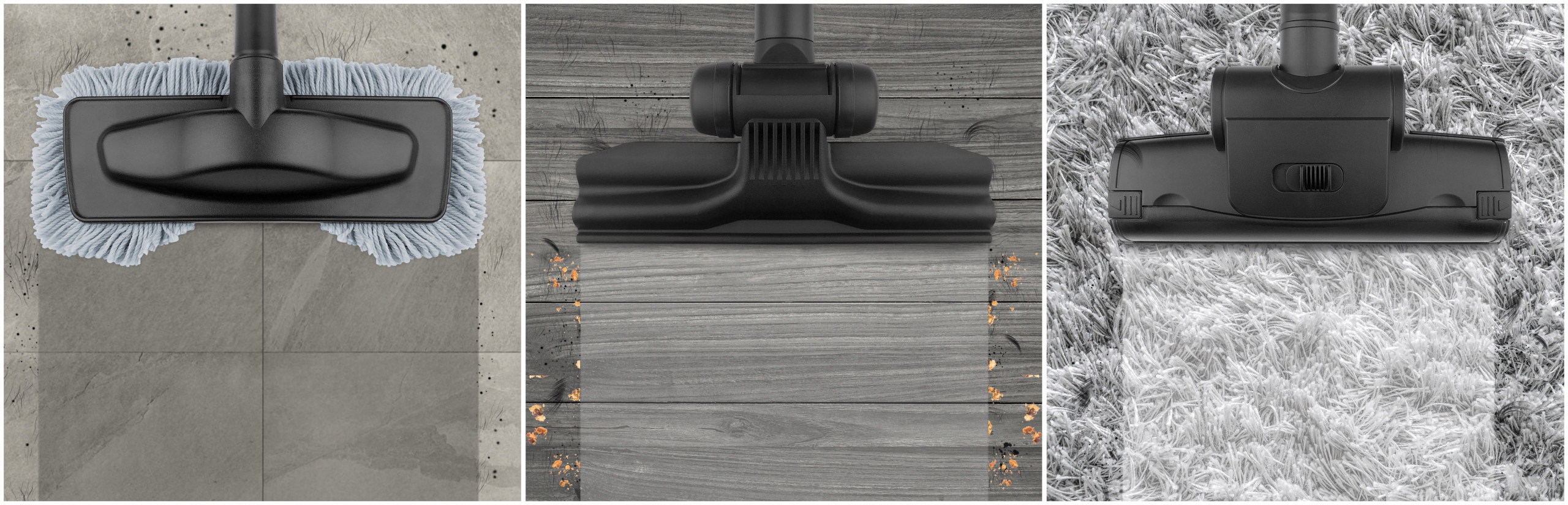 Щетка с двумя функциями обеспечивает высокий уровень уборки и экономит время, затрачиваемое на уборку.