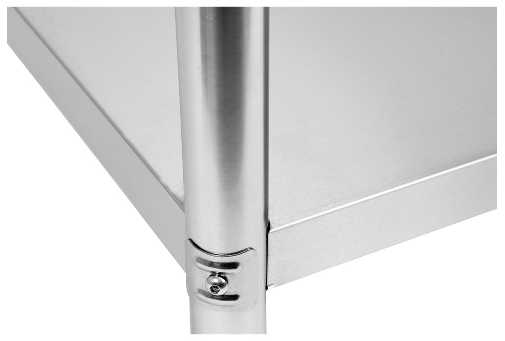 Центральная таблица с полкой изготовлена из высококачественной из нержавеющей стали SS201, адаптированной для использования в гастрономии при интенсивной эксплуатации. Поверхности делают его очень легко чистым.