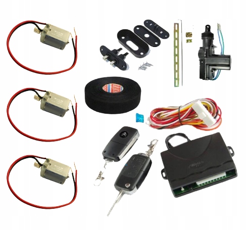 В комплект входят 3 двигателя, которые необходимо разместить в пустых кассетах в автомобиле. Привод задней двери и разъем сдвижной двери. Радиоуправление с двумя пультами дистанционного управления и светодиодной сигнализацией. Бесплатная изолента, которая пригодится при монтаже. Схема электрического подключения.