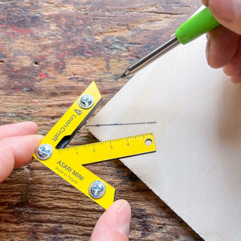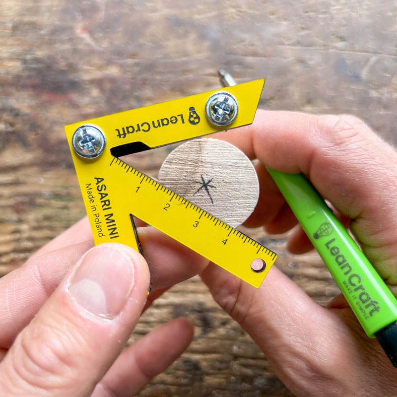 АСАРИ-МИНИ - небольшой простой прибор для определения центра элемента в форме круга или цилиндра диаметром примерно до 8 см. Приложив прибор сбоку к элементу и проведя несколько прямых линий через центр круга, можно легко его разметить.