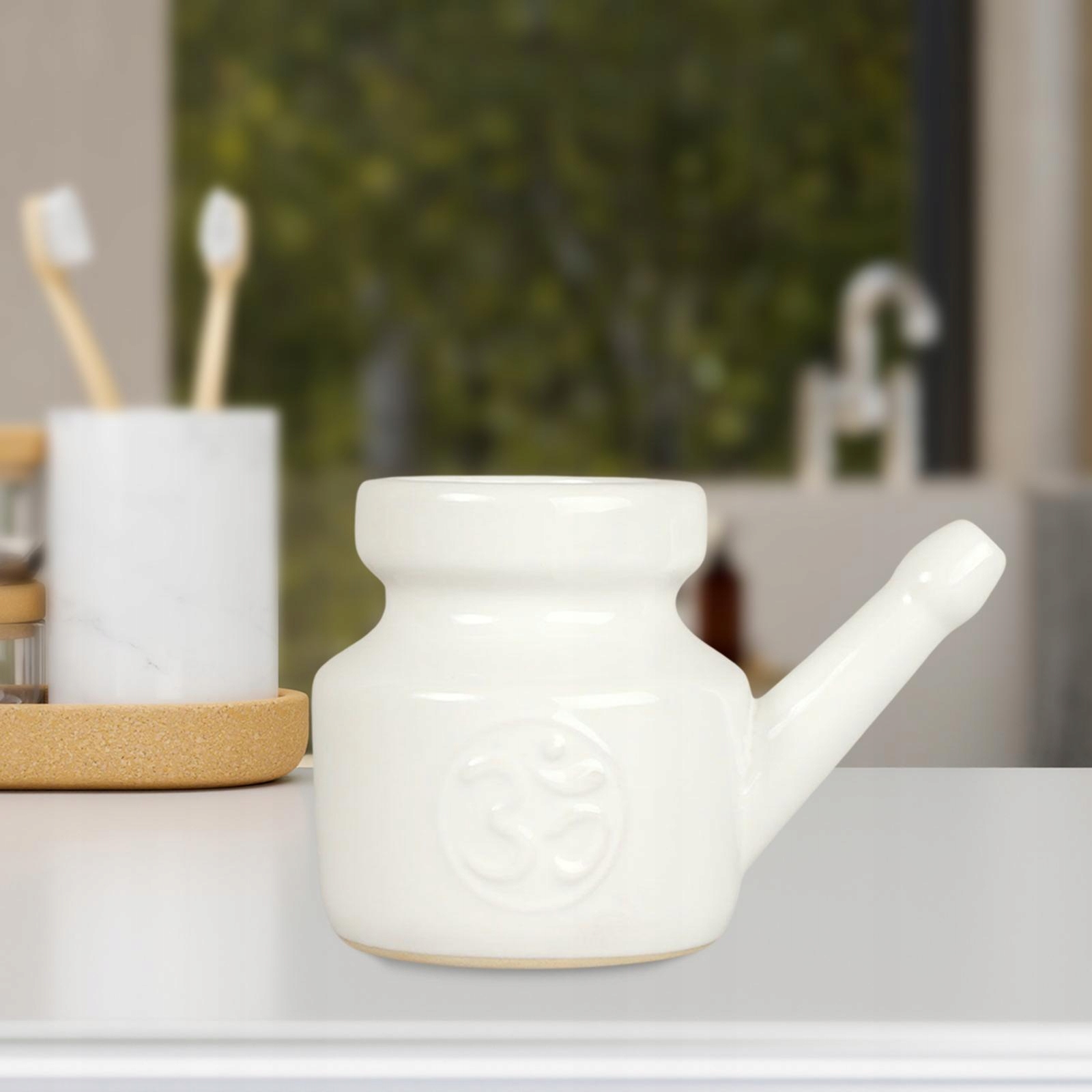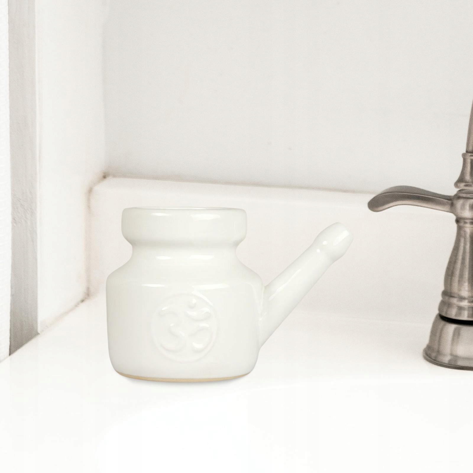 Ceramic Neti Pot, Spout Pot ,Travel Portable White