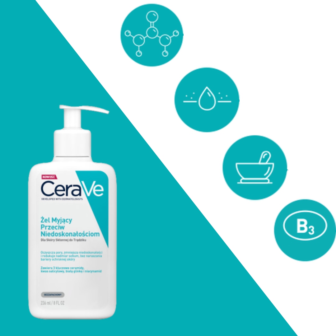 - CeraVe Очищающий гель против несовершенств 236 мл - Для кожи, склонной к акне