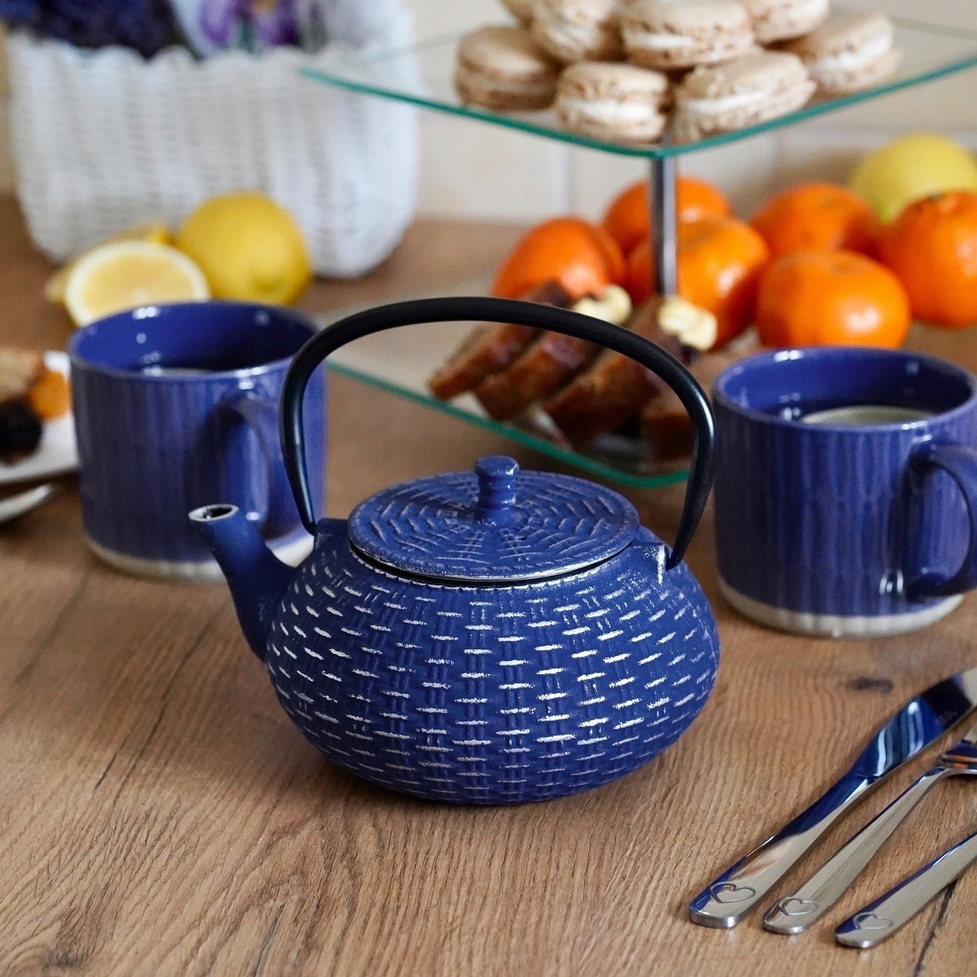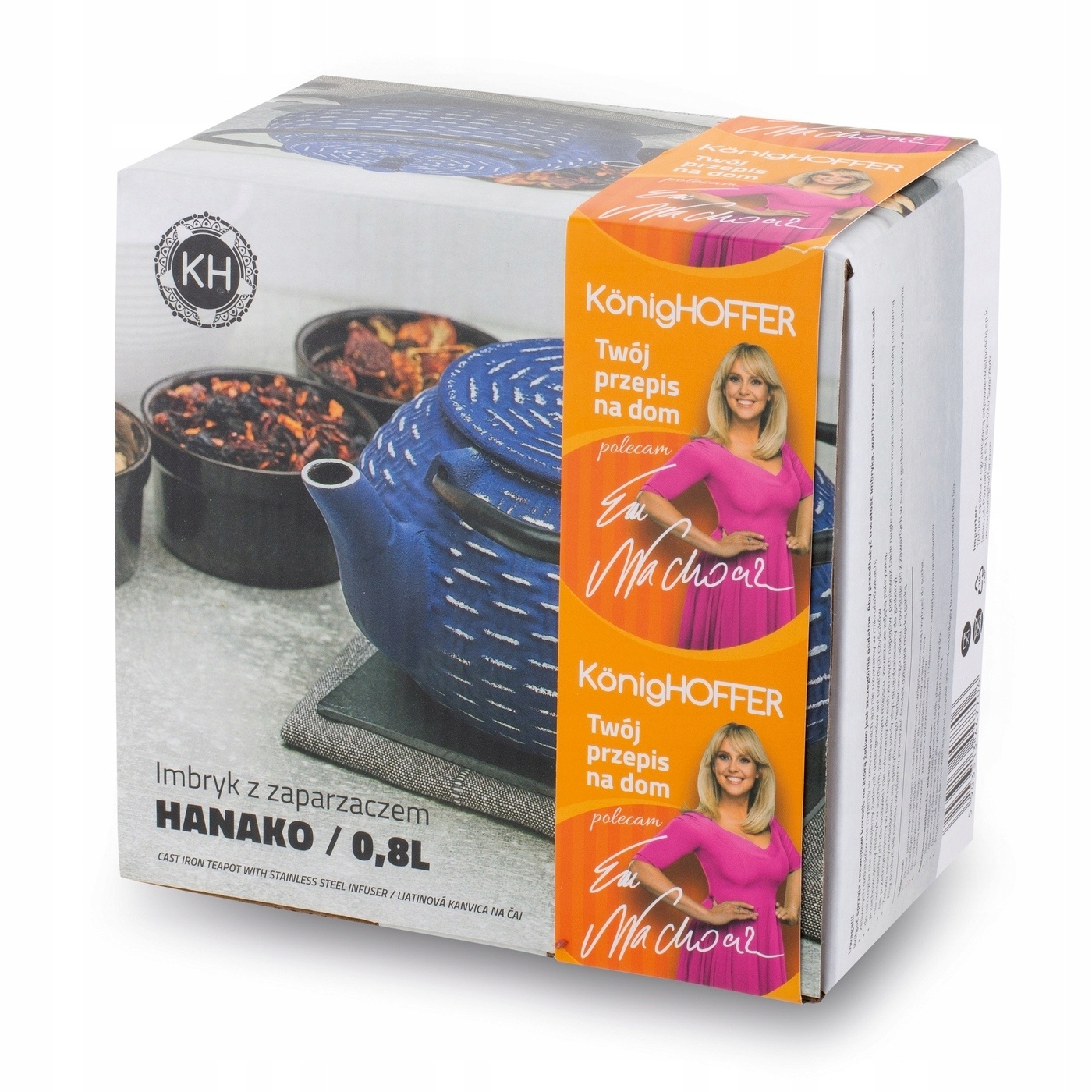 Темно-синий чайник с заварочным устройством Konighoffer Hanako Silver 0,8 л изготовлен из чугуна. В комплект также входит заварник из нержавеющей стали. Благодаря ему вы сможете отделить травы от кипятка и быстро прервать процесс заваривания эссенции. Внутренняя часть чайника покрыта нетоксичной эмалью. Это облегчит ваш уход и обеспечит пользу от настоя. Модель долго сохраняет тепло. Можно поставить на грелку (до 60 минут!). Большая ручка чайника позволяет легко переносить его и разливать чай по кружкам и чашкам. Крышка корпуса позволяет эффективно регулировать пар внутри. Продукт рекомендует Ева Вахович. Как амбассадор бренда Konighoffer, она горячо и с улыбкой рекомендует его для домашнего использования. Вместе с ним вы получите свой рецепт для дома. Это один из лучших вариантов в этой категории!