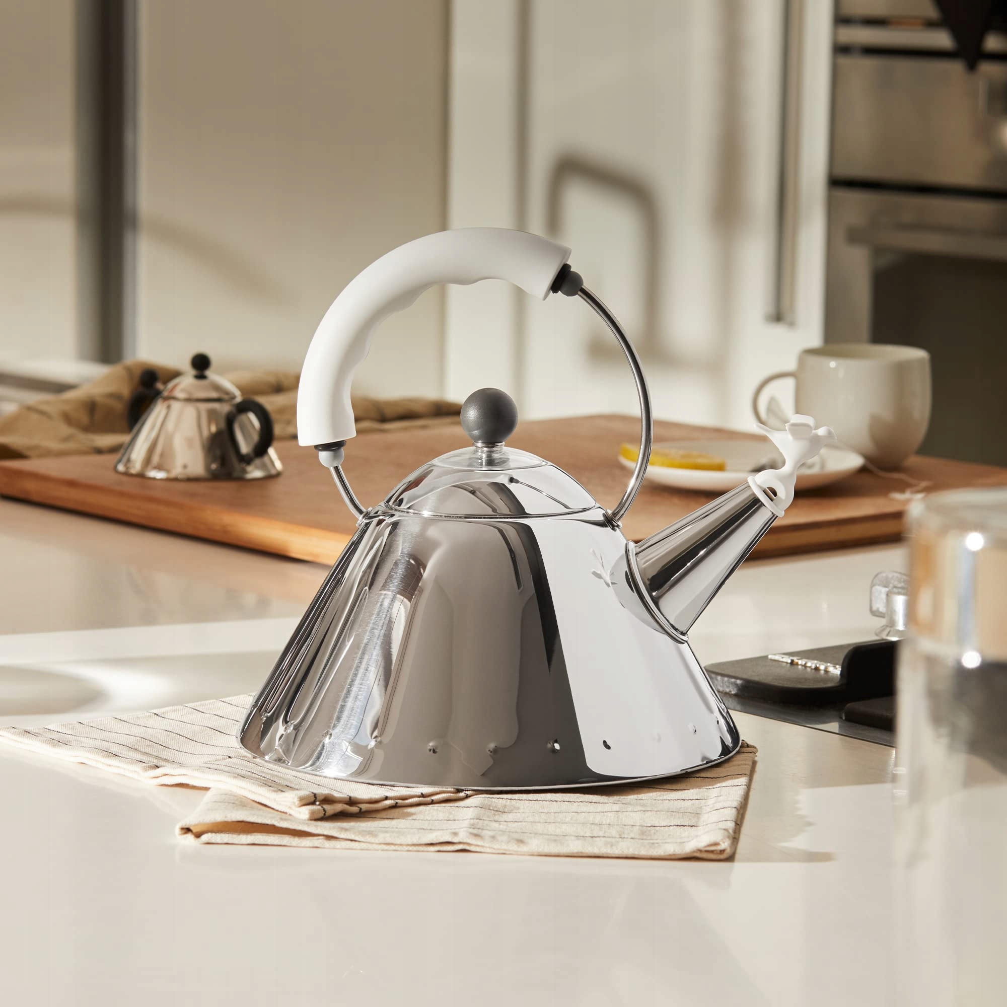 - пункт списка: чайник со свистком пламени. Для использования с газовой плитой. Дизайнер: Майкл Грейвс. Материал: нержавеющая сталь 18/10, полированная. Размеры: высота 22,5 см, диаметр 22 см. Вместимость: 200 см (7 эт.). унции)