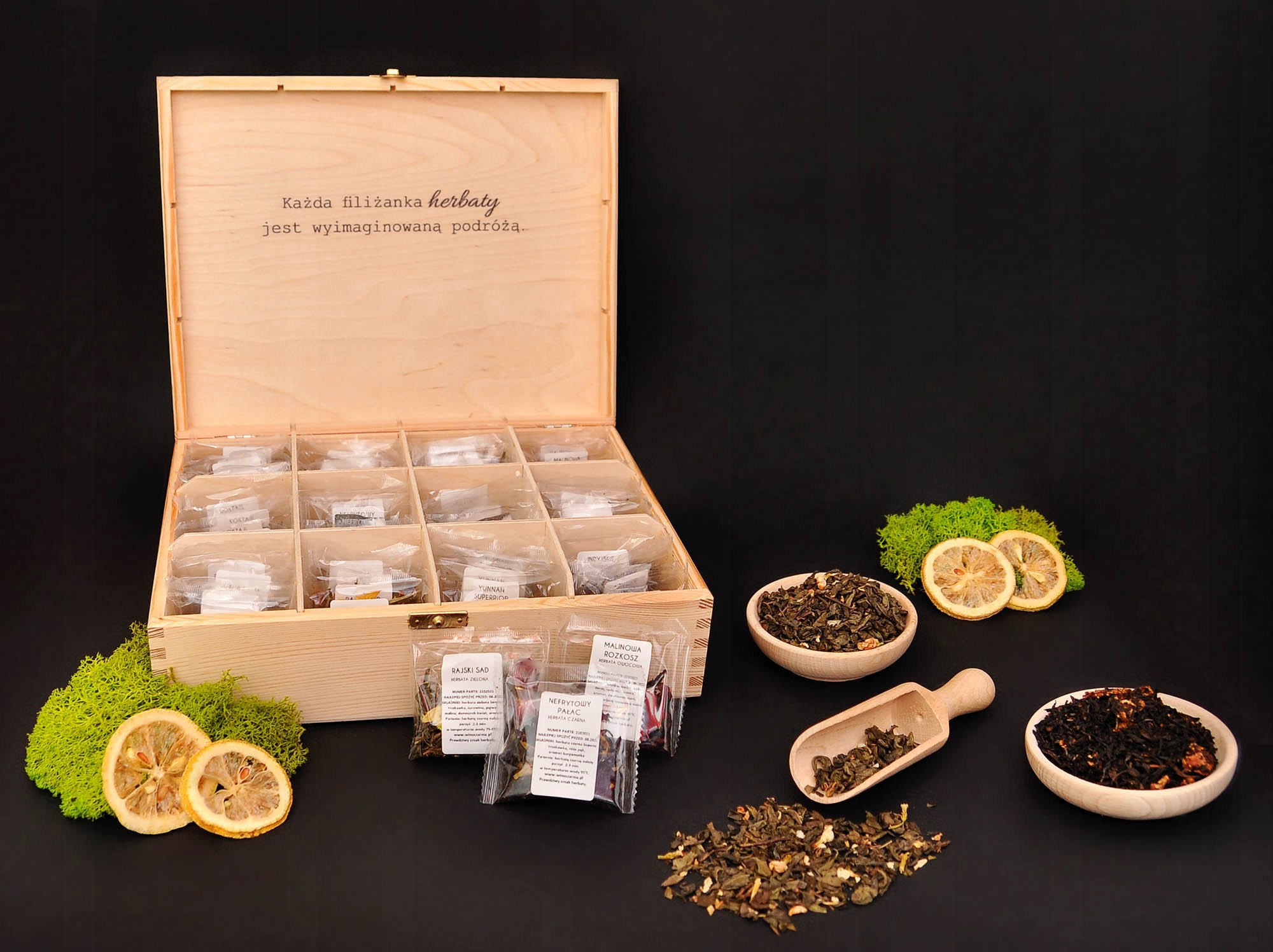 Задумались о чем-то оригинальном и уникальном? Представляем коробку, в которой находится 12 различных видов черного, зеленого и ароматизированного крупнолистового чая – по 4 упаковки в каждом. Чайный микс идеален для холодных вечеров или в качестве подарка близкому человеку.