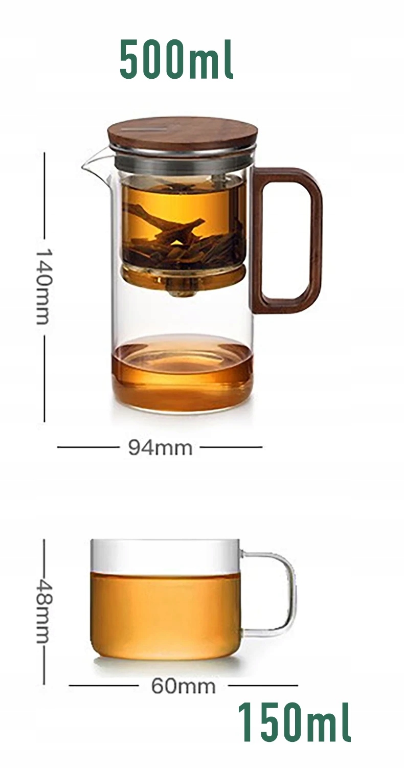 Крышка и ручка чашки изготовлены из древесины черного ореха, а стиль сочетает в себе натуральное и современное стекло, что придает ей высокий эстетический дизайн.